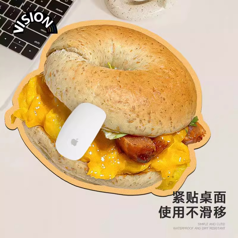 原创美食插画鼠标垫异形橡胶防滑垫汉堡薯条女便携电脑办公室桌垫