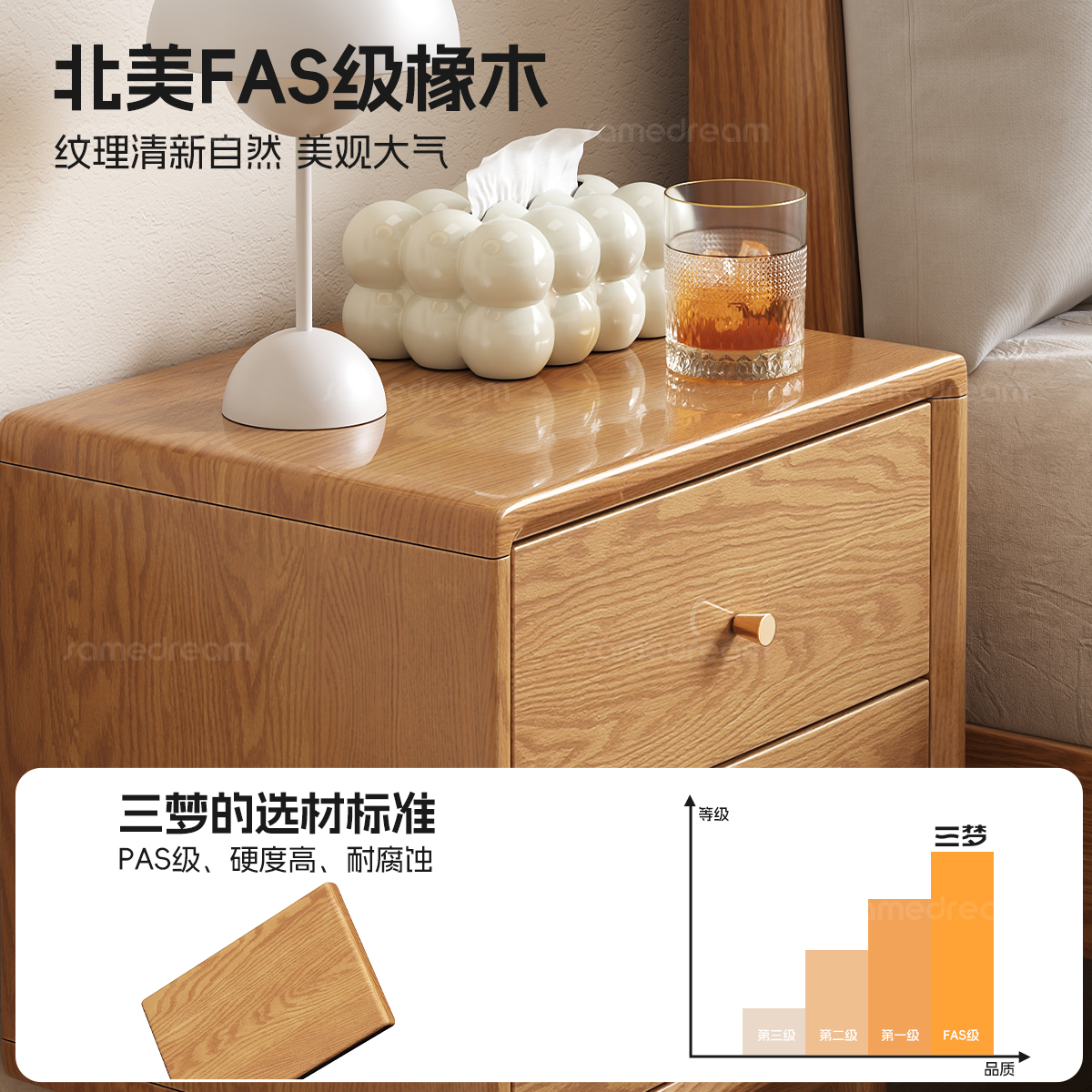 全实木床头柜橡木家用卧室2025爆款 北欧小型原木床边收纳储物柜子