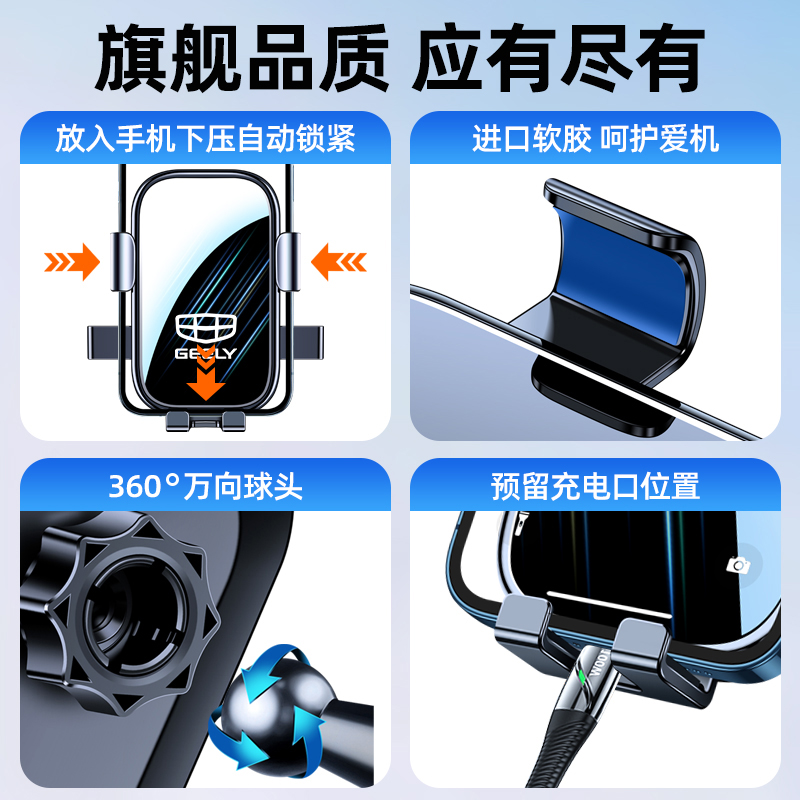 无线充汽车导航支架 吉利星瑞专用车载手机支架改装 适用于20 25款