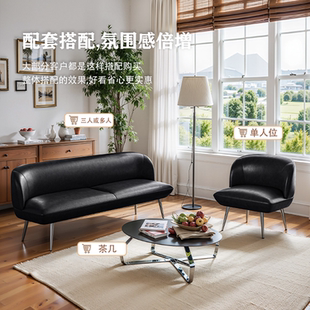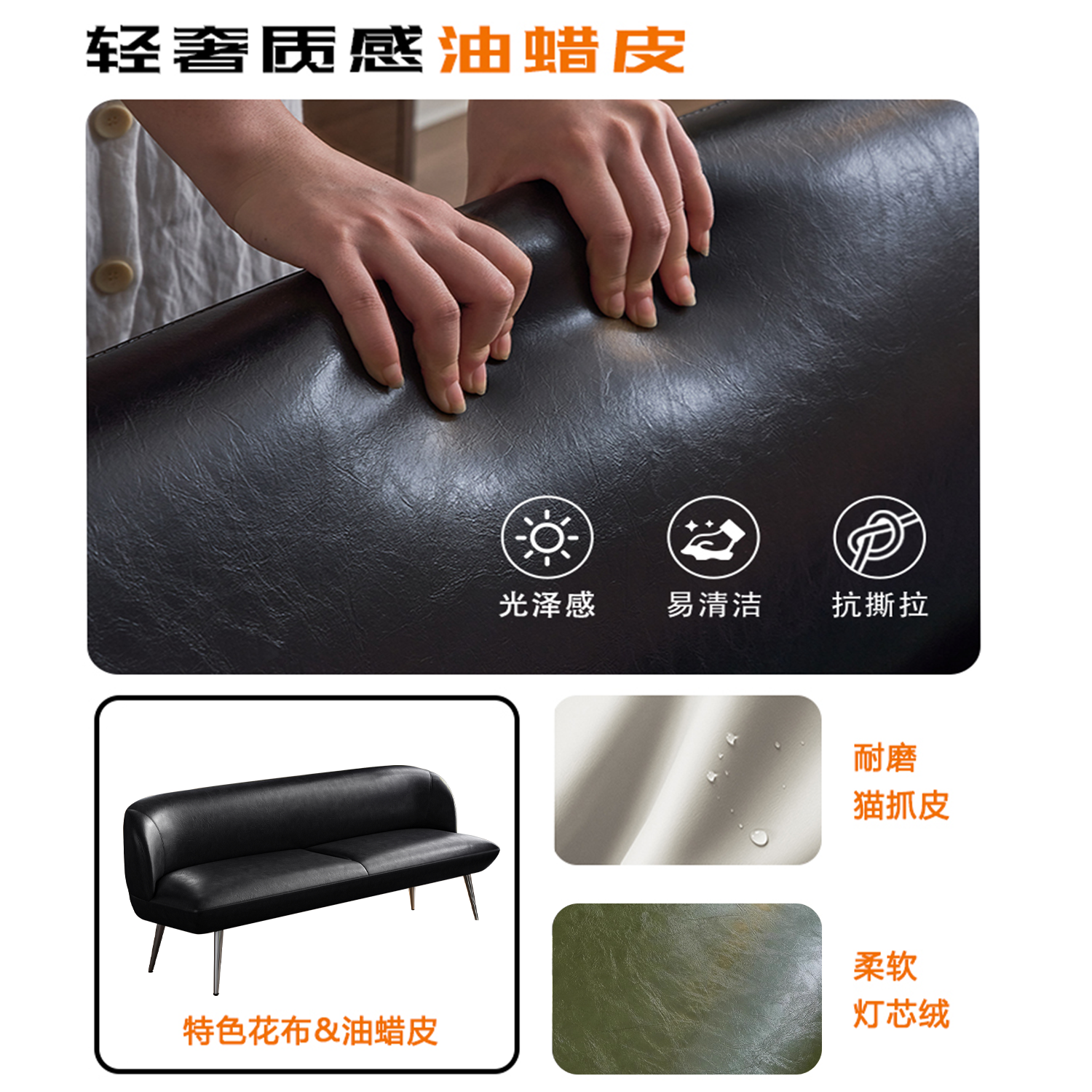 沙发小户型客厅油蜡皮沙发复古黑色卧室公寓休息区接待服装 店双人