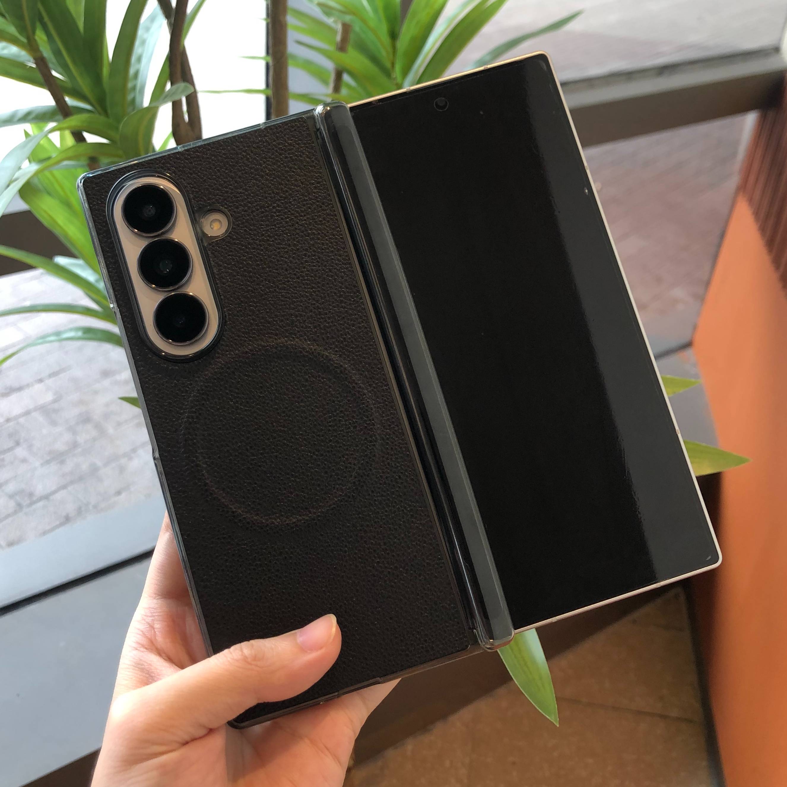 适用于三星zfold7手机壳新款 磁吸皮纹超薄防摔fold6双中轴全包边角保护背磁fold7商务简约galaxy高端ins时尚