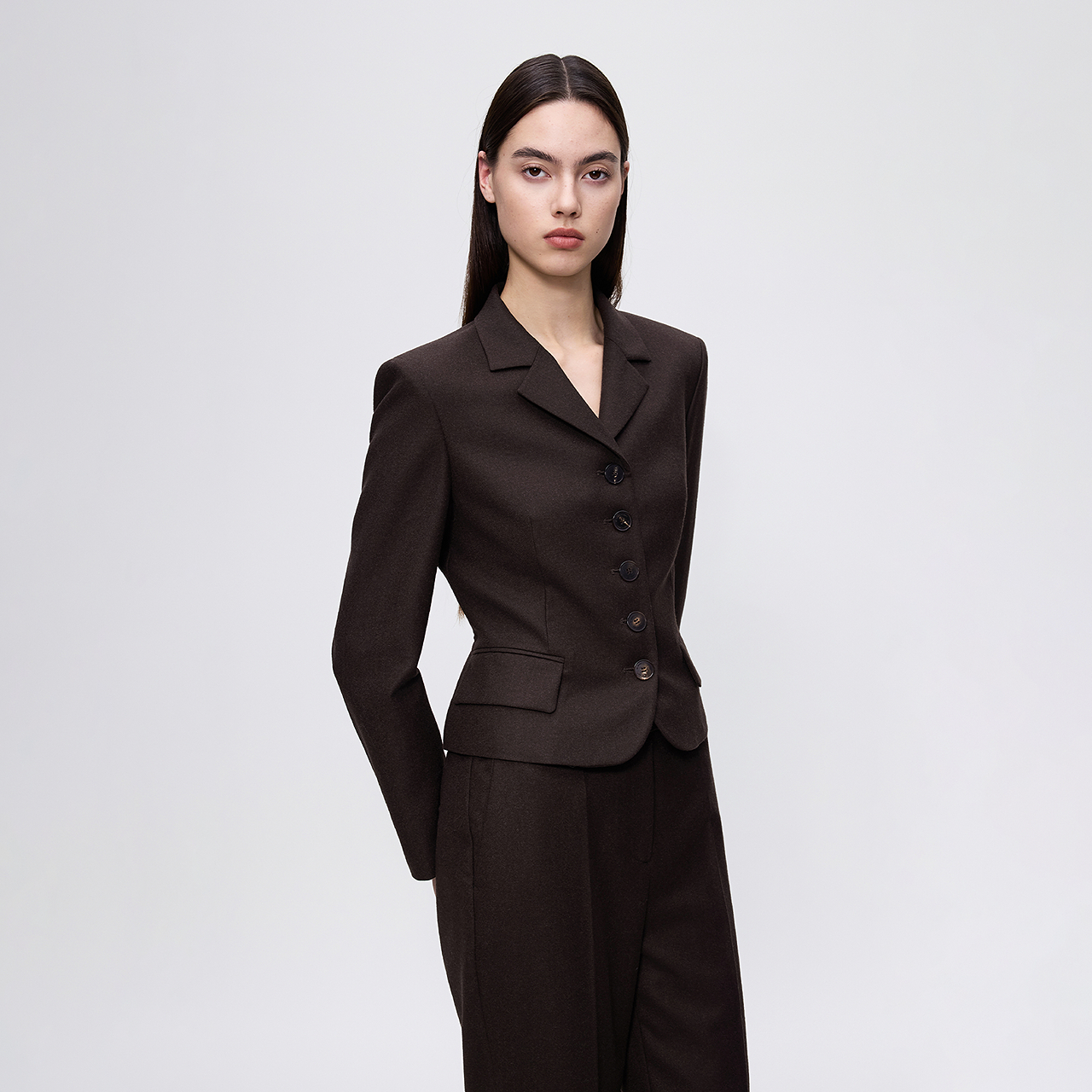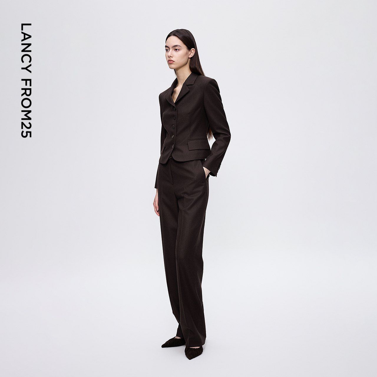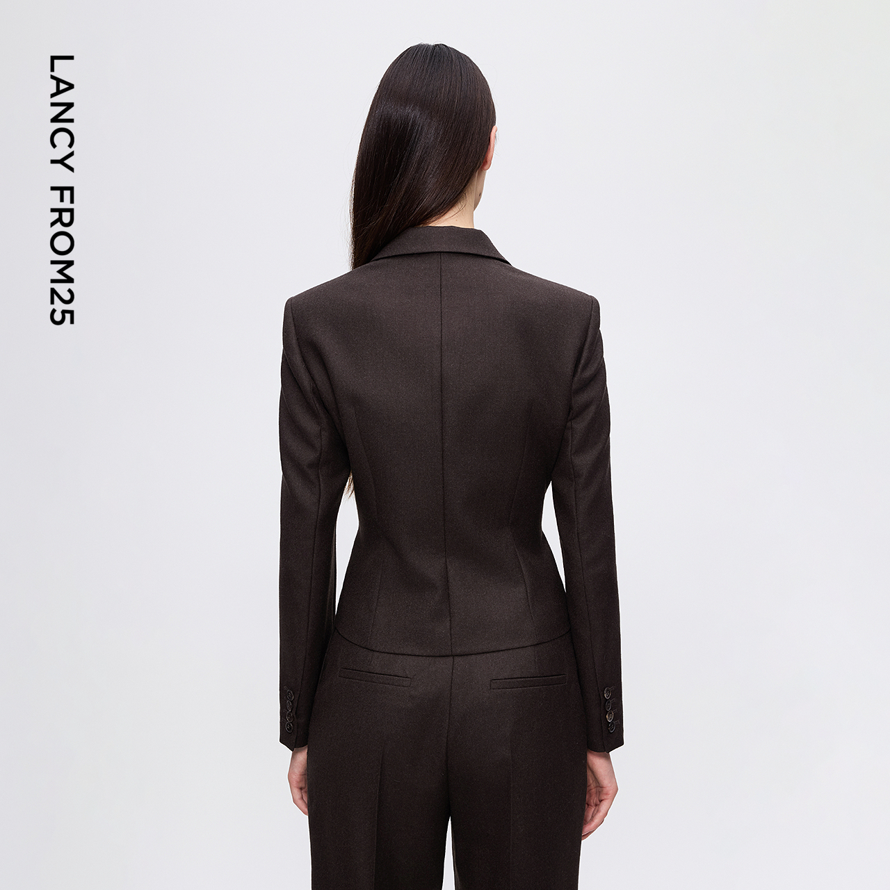 新款 朗姿设计感绵羊毛西装 短外套小翻领通勤风上衣2025年冬季