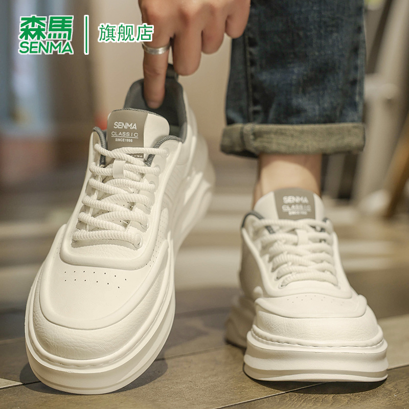厚底耐磨低帮运动潮鞋 森马男鞋 2025新款 潮流百搭纯白休闲板鞋 秋季