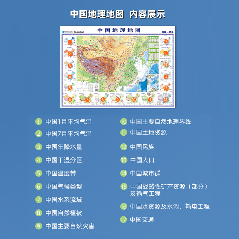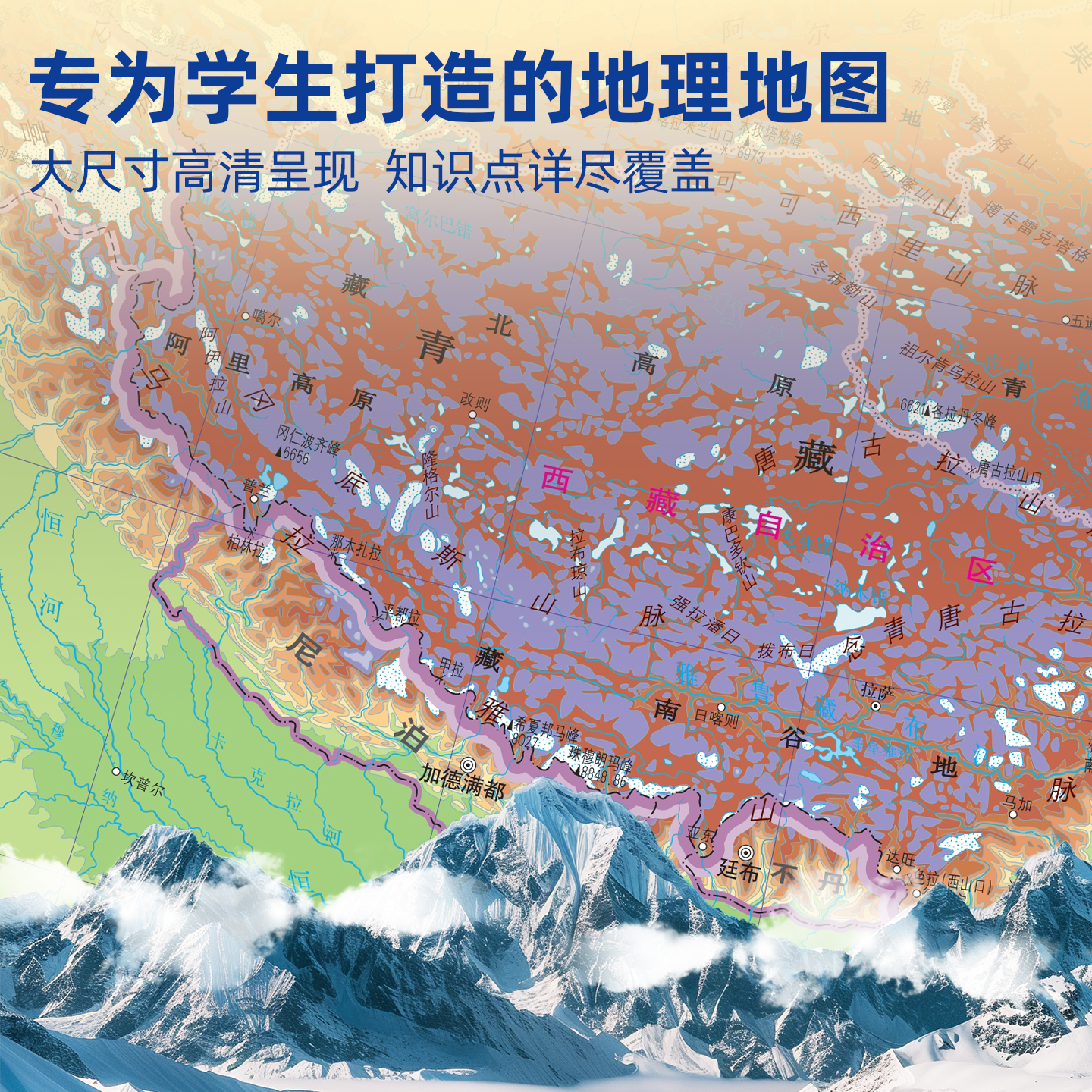 2025全新修订 气候洋流时区山脉墙贴挂画装 中国地图和世界地图初高中生专用防水覆膜 地图 饰 高清地形地貌图学生地理知识版