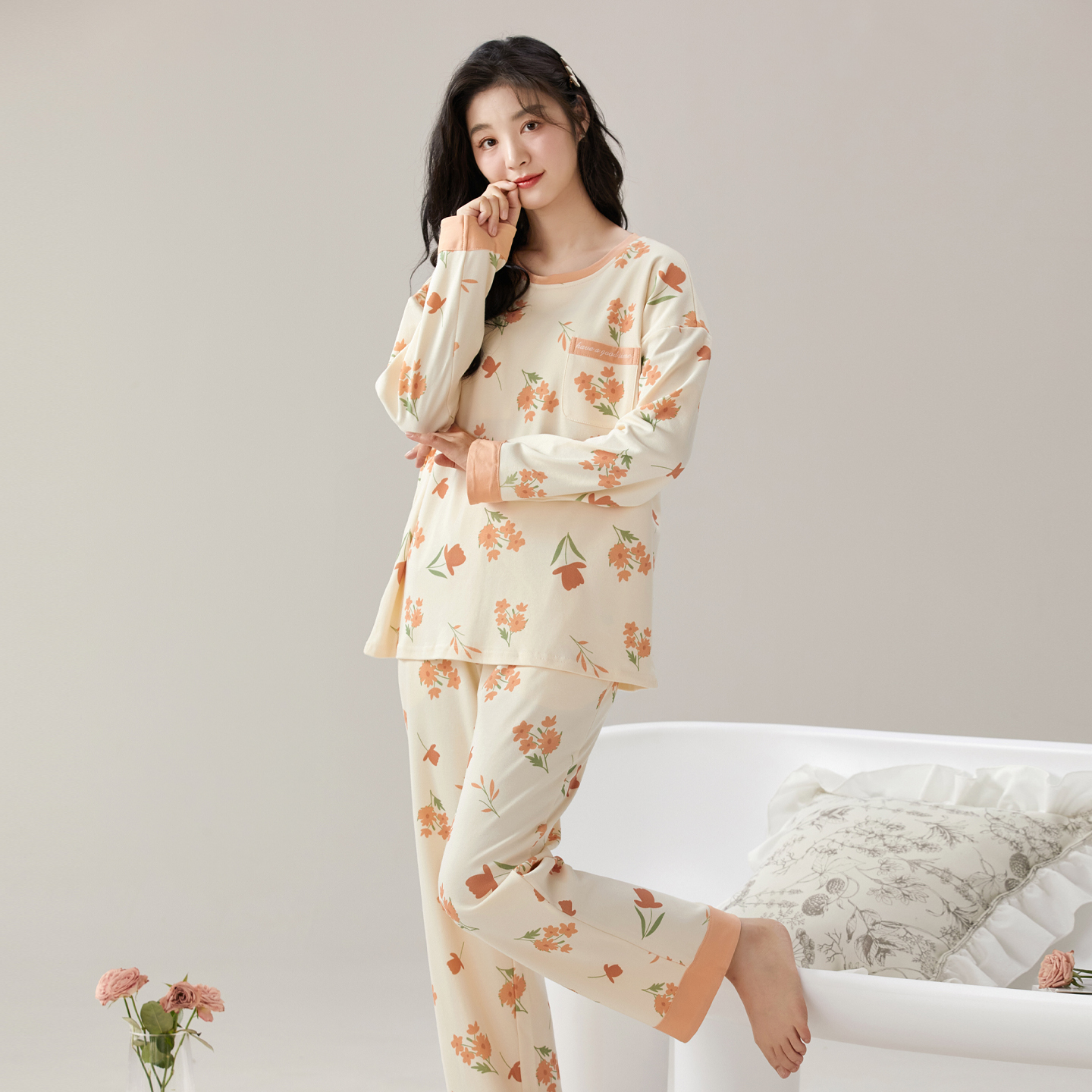 秋冬季 ubras纯棉家居服女士情侣睡衣套装 可外穿100%棉布料男女款
