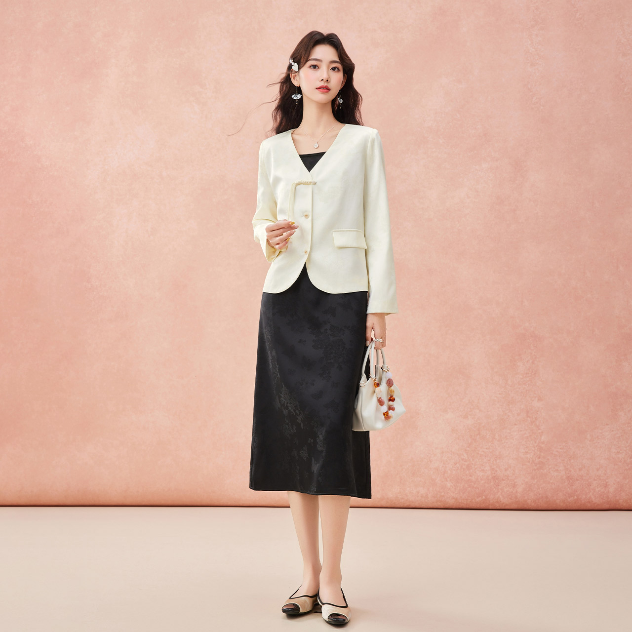 爱依服时尚 新中式 套装 新款 成熟优雅气质高级里外套裙 2025秋季 IEF