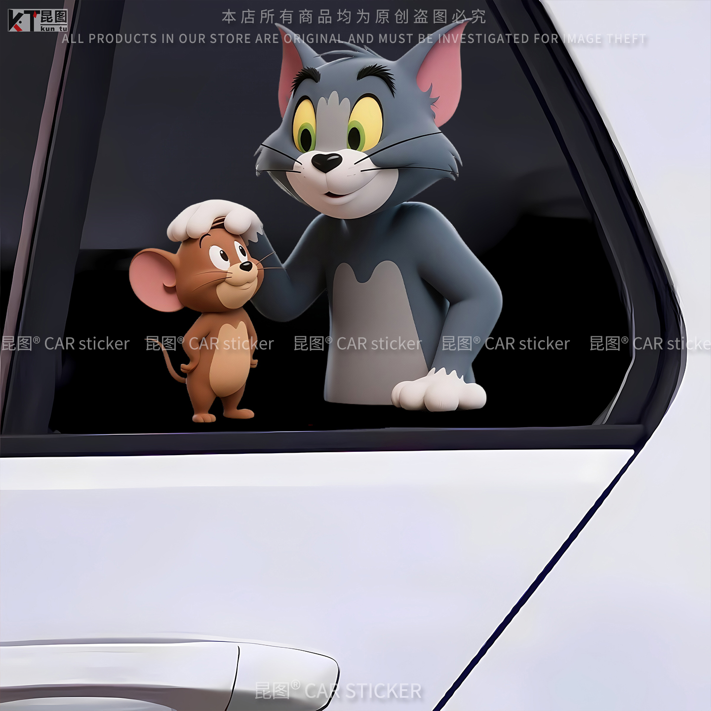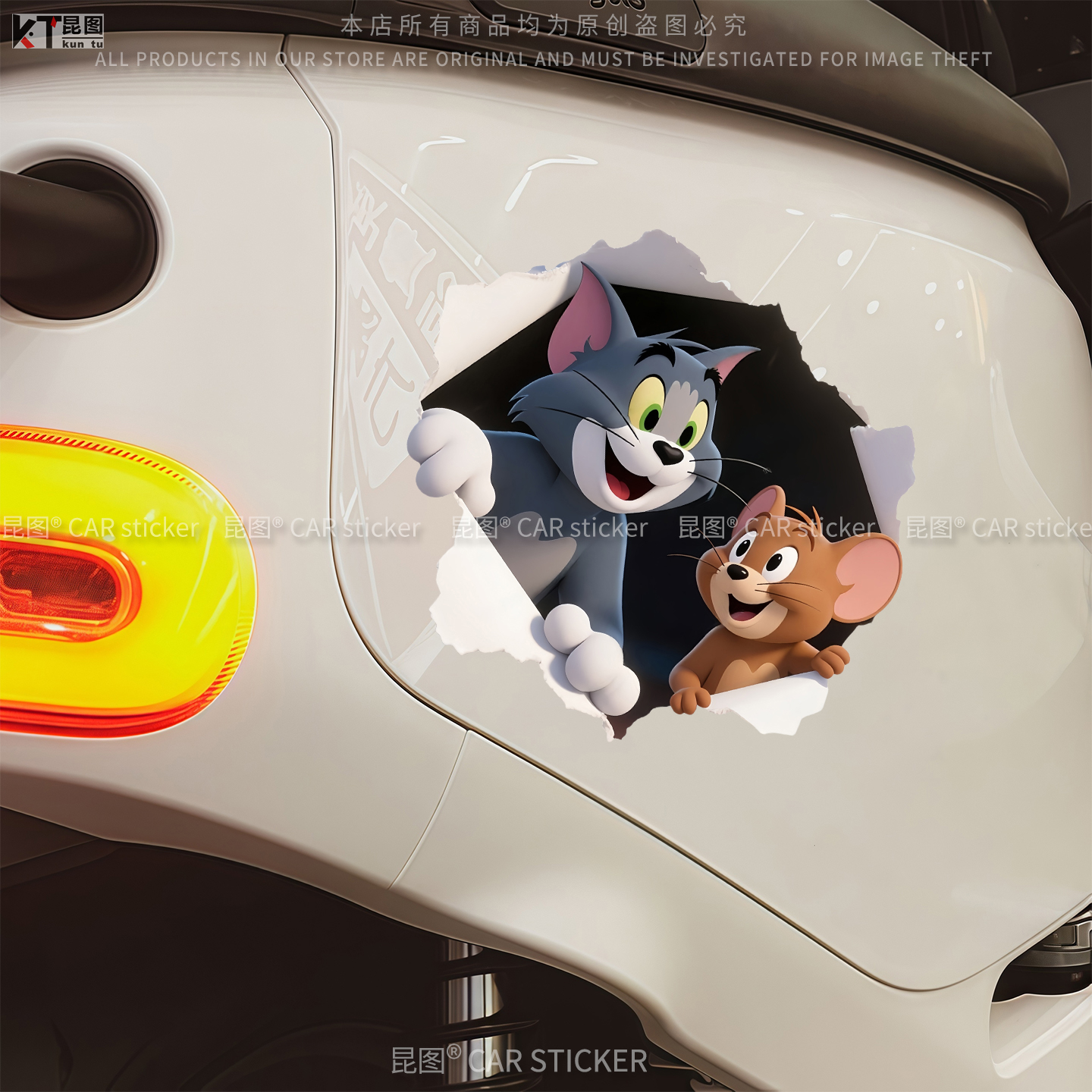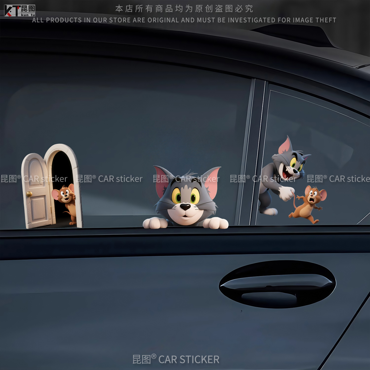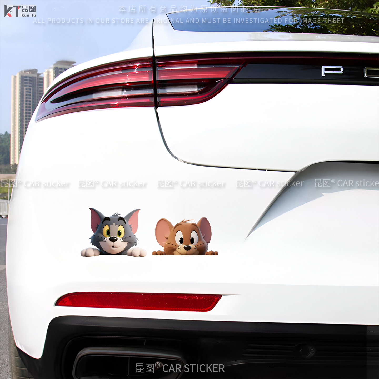 卡通猫3D立体汽车贴纸车身划痕遮挡老鼠可爱车窗玻璃装 饰电动车贴