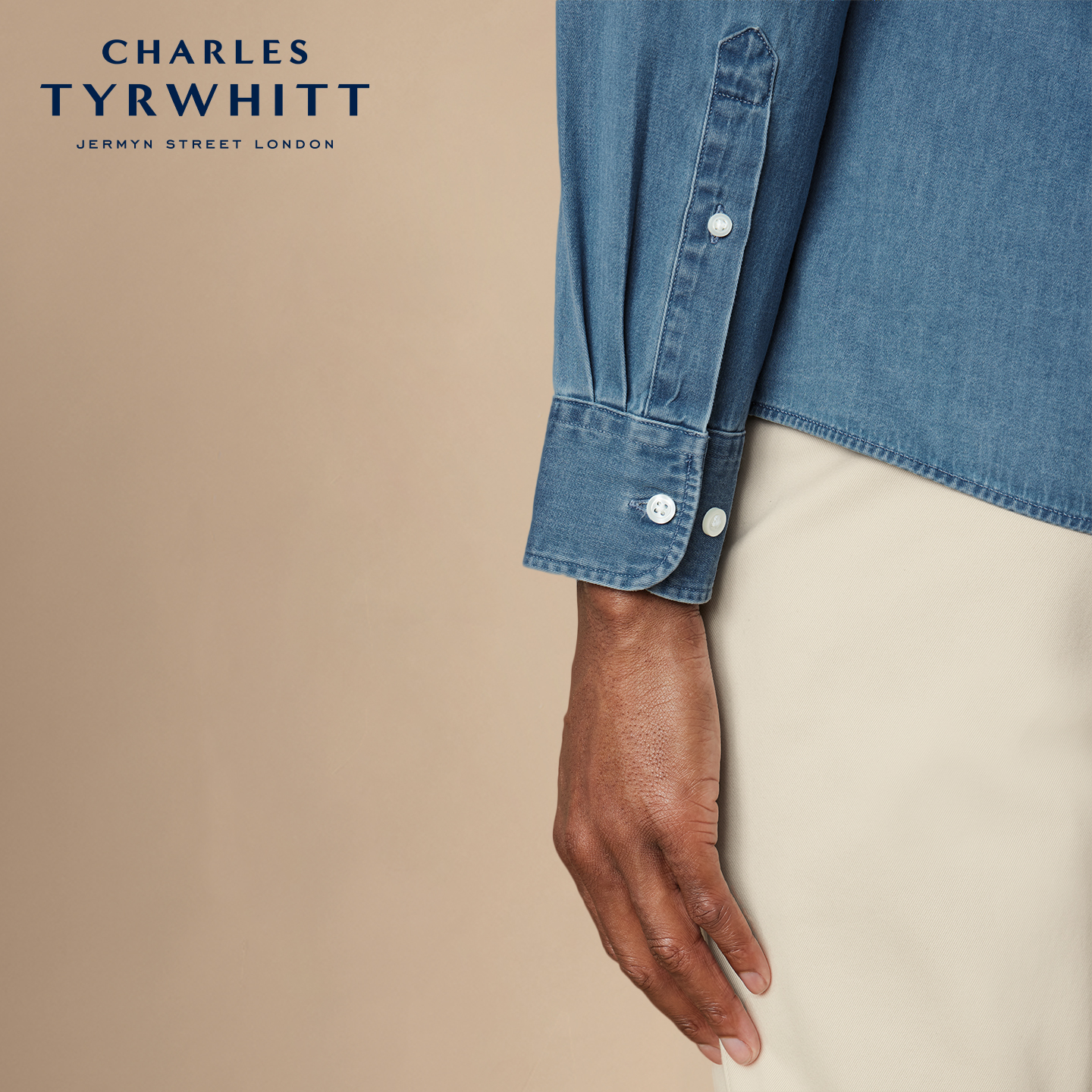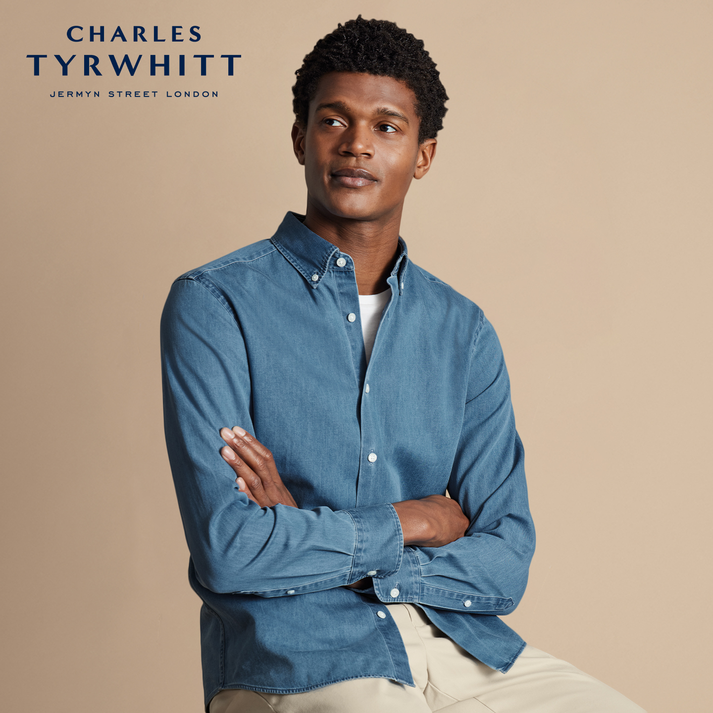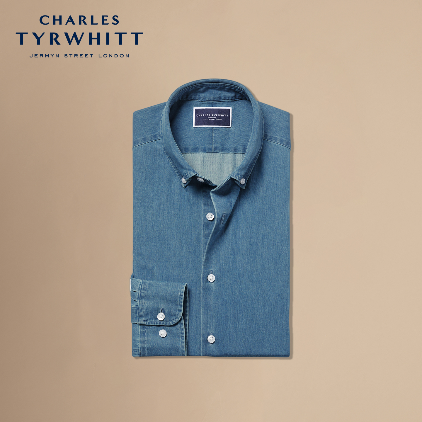 TYRWHITT修身 单宁衬衫 版 商务正装 型海蓝男士 CHARLES