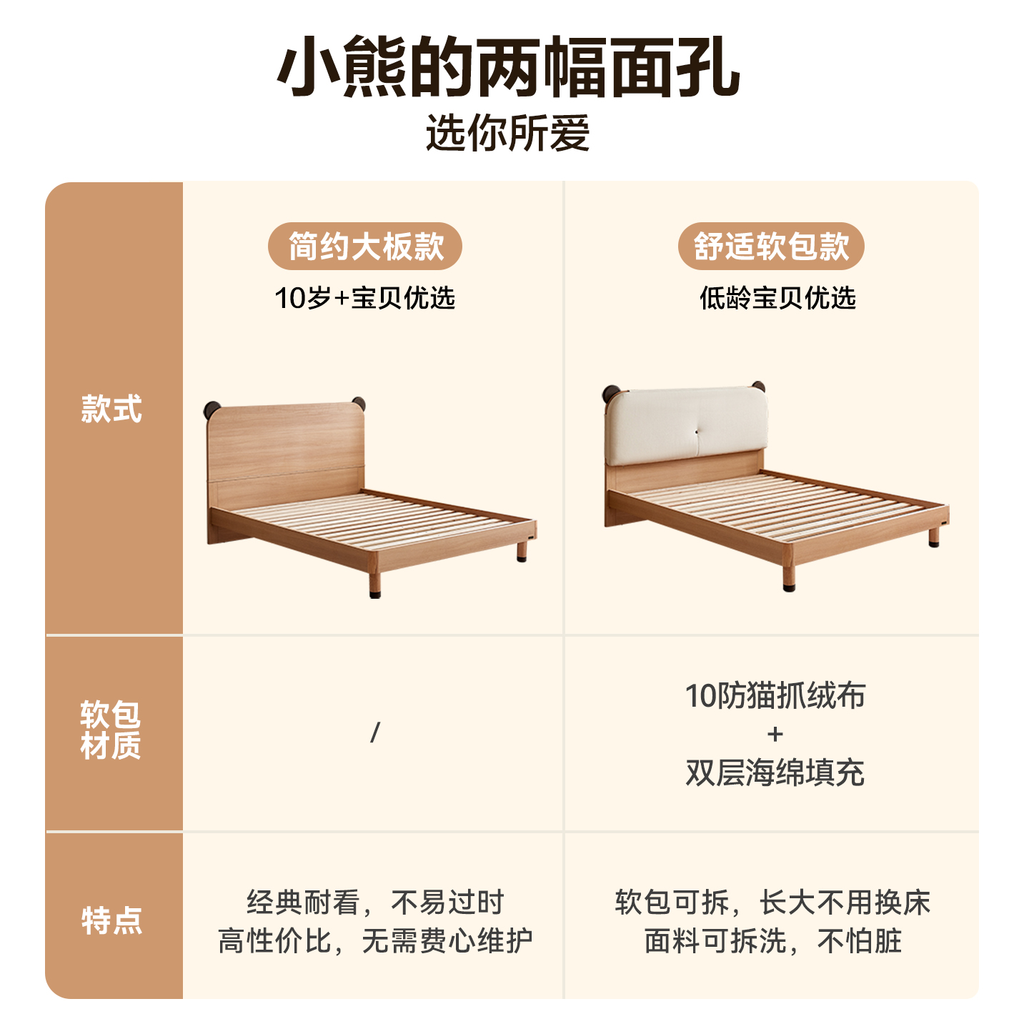全友家居原木风小户型1.2m儿童床2025新款 卧室男女孩1米5单人床