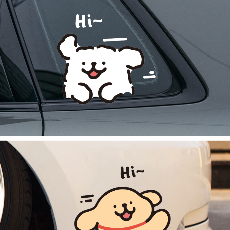 兜风线条小狗车贴创意风汽车对联三角窗车贴车窗贴纸电动摩托装 饰