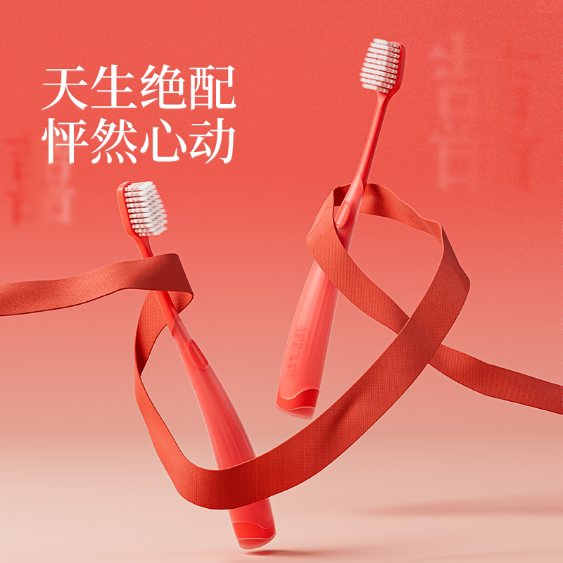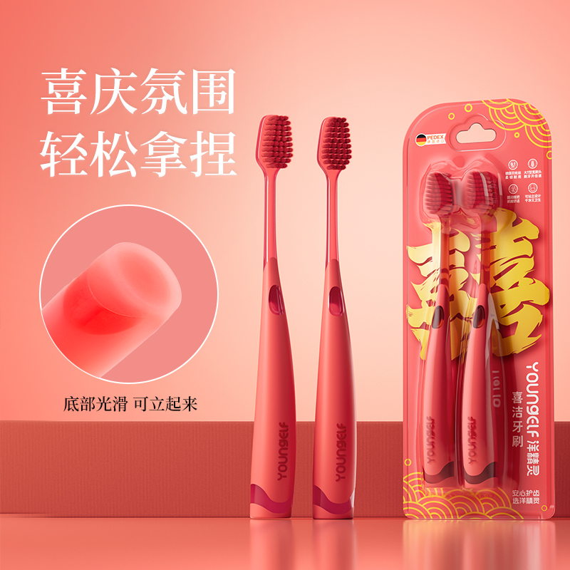 洋精灵红色新婚婚庆结婚牙刷软毛护龈成人喜庆陪嫁新年家用情侣款