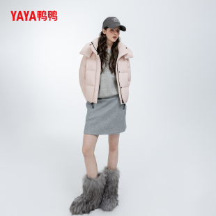 雪中飞2025秋冬新款 简约百搭青春休闲 女士菱格圆领羽绒服内恤时尚