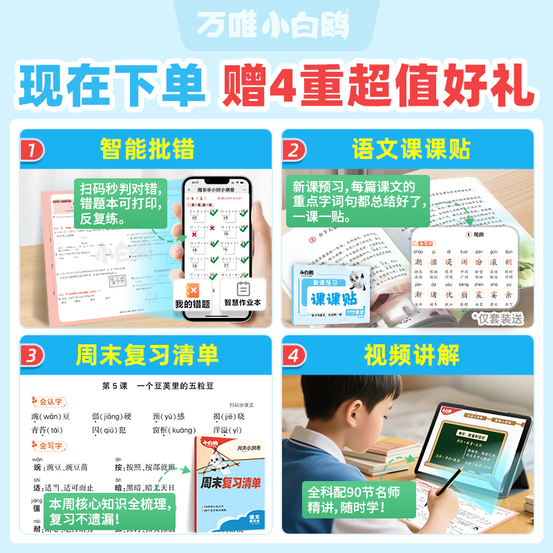 万唯小白鸥周末半小时小测卷2026小学语文数学英语一二年级三年级四五六上册下册教材同步练习册试卷学霸思维训练天天练25秋情景题