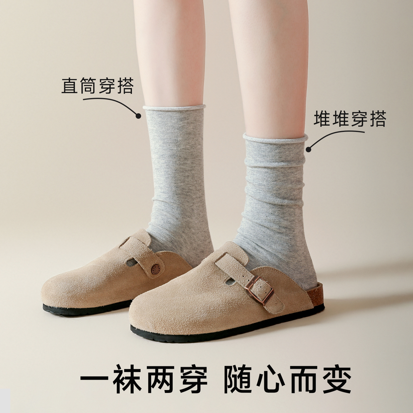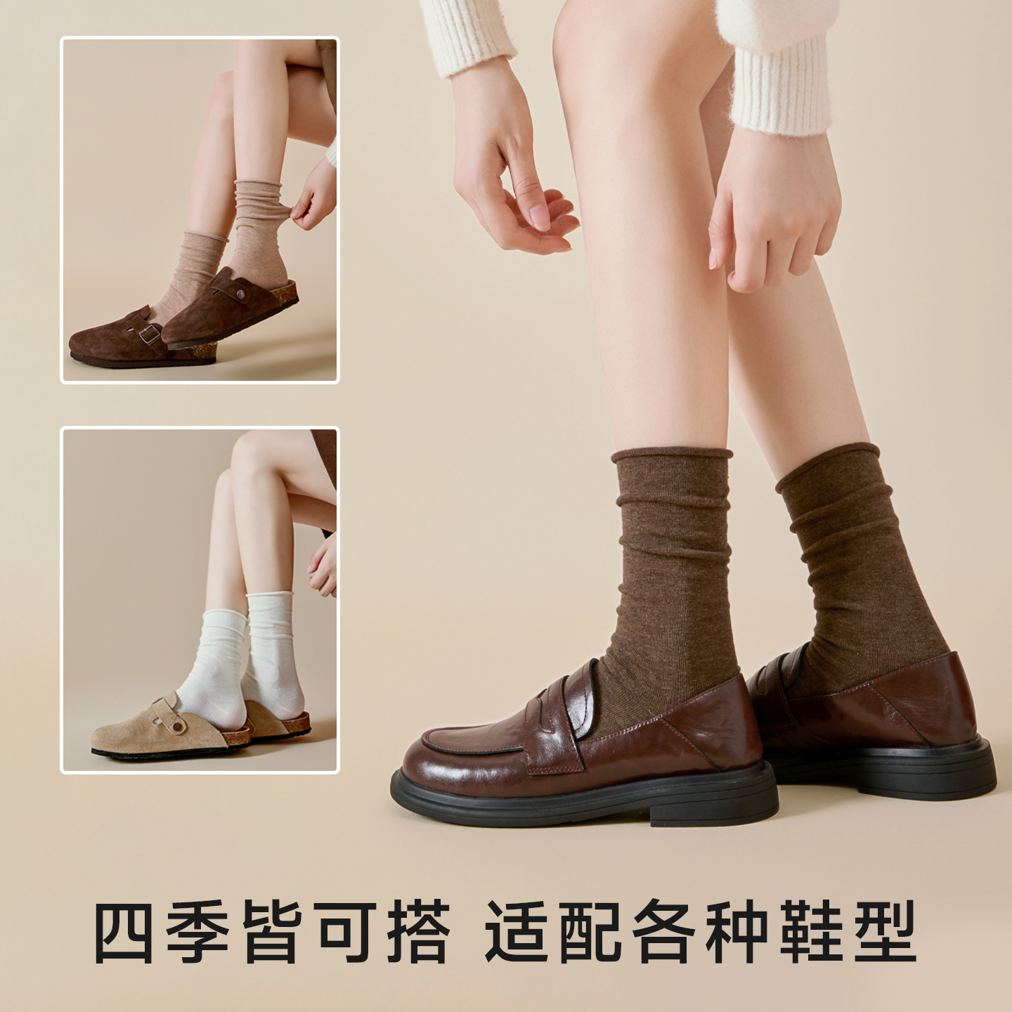 无骨长袜 中筒袜纯棉咖色月子堆堆袜配勃肯鞋 美拉德袜子女款 秋冬季