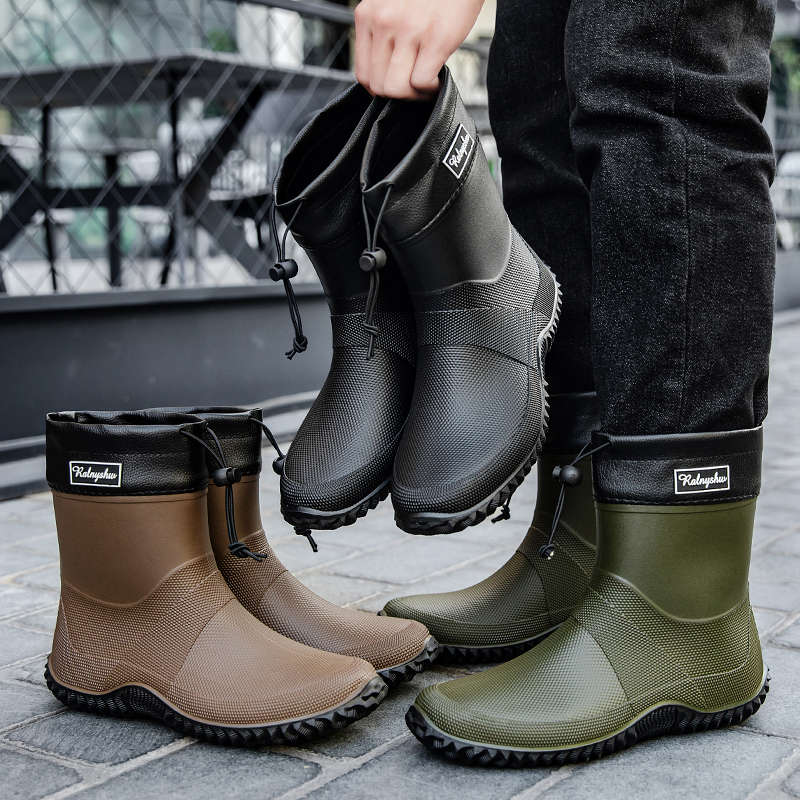 可折叠防水鞋 日系溯溪水靴 厚底户外露营钓鱼登山靴软胶轻便携雨鞋