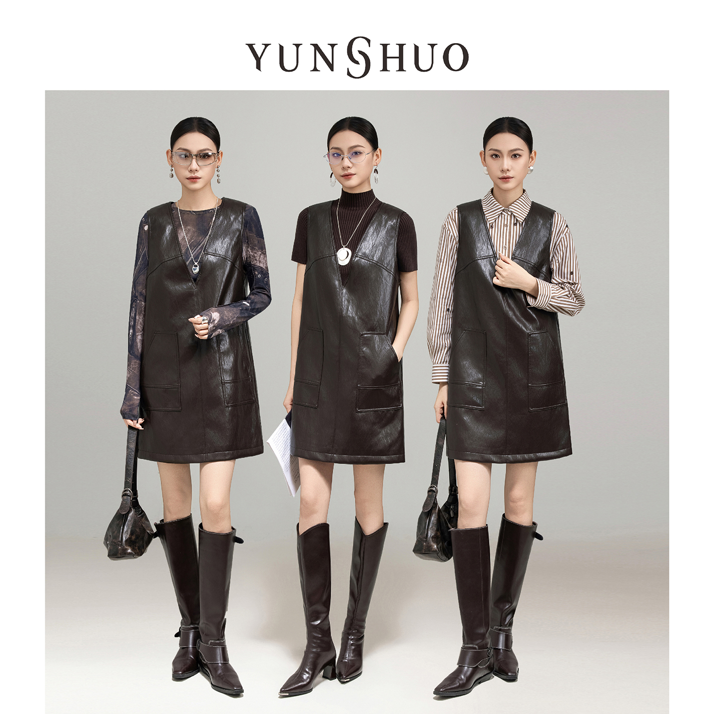 两件套裙子女装 侧边抽绳吊带裙罩衫 503624 三福连衣裙2025秋季