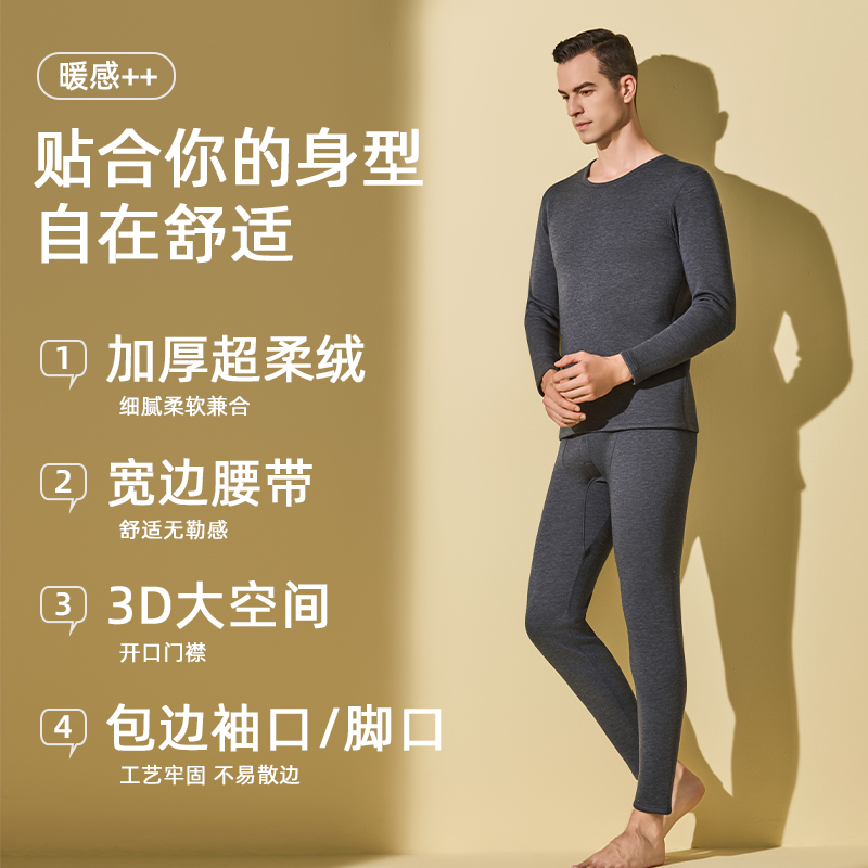 内搭巨厚冬季 加绒加厚纯棉发热秋衣秋裤 男 保暖内衣套装 恒源祥男士
