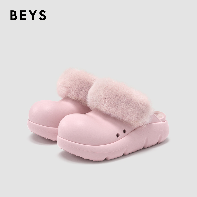 防水防滑勃肯雪地靴 保暖鞋 BEYS小丑加绒半拖加绒厚底棉鞋 2025新款