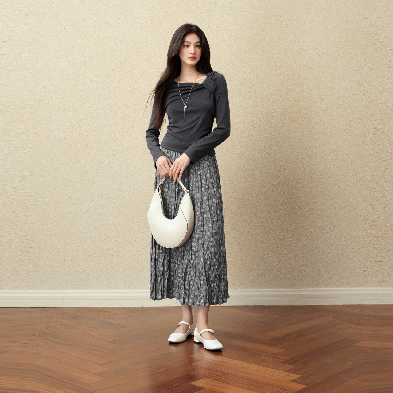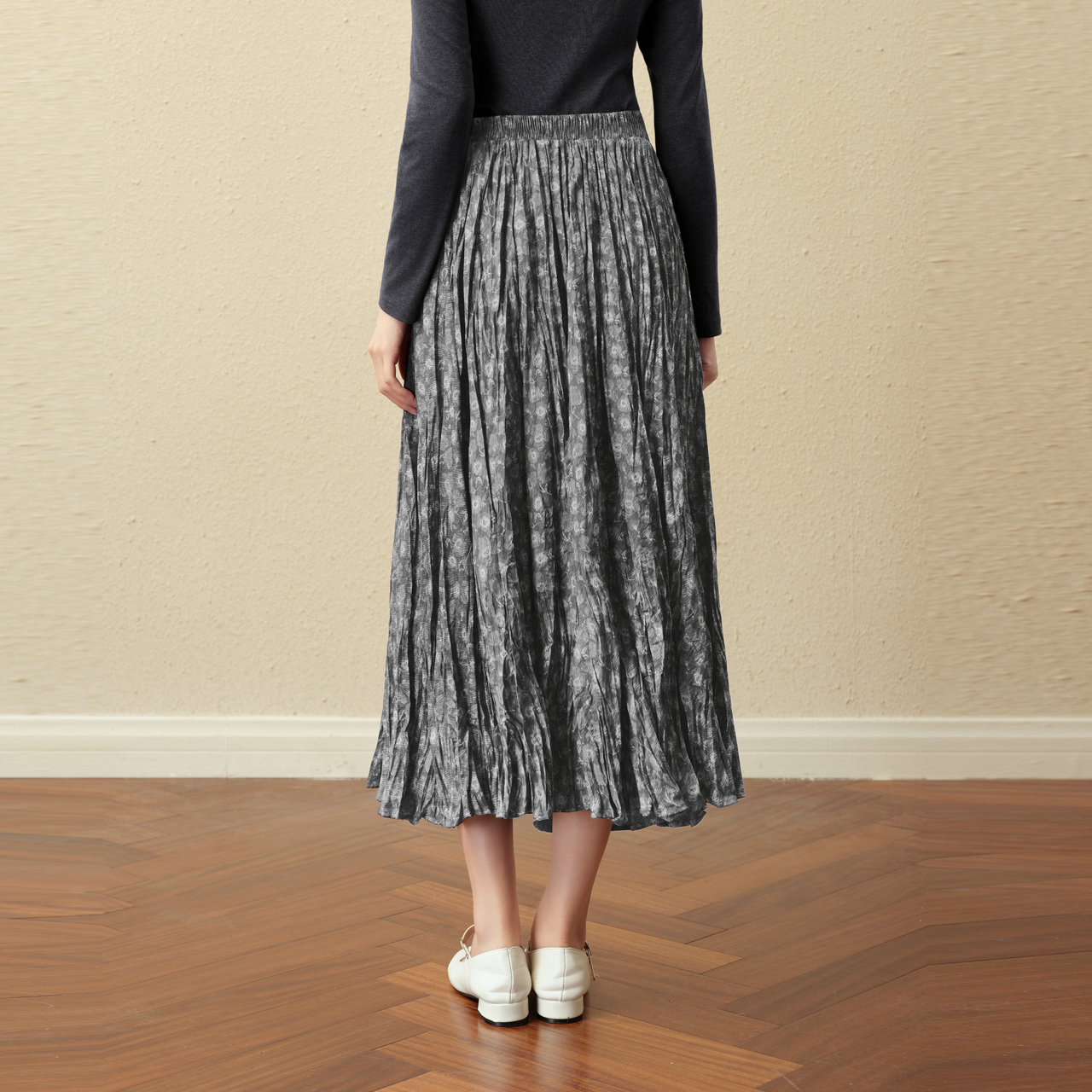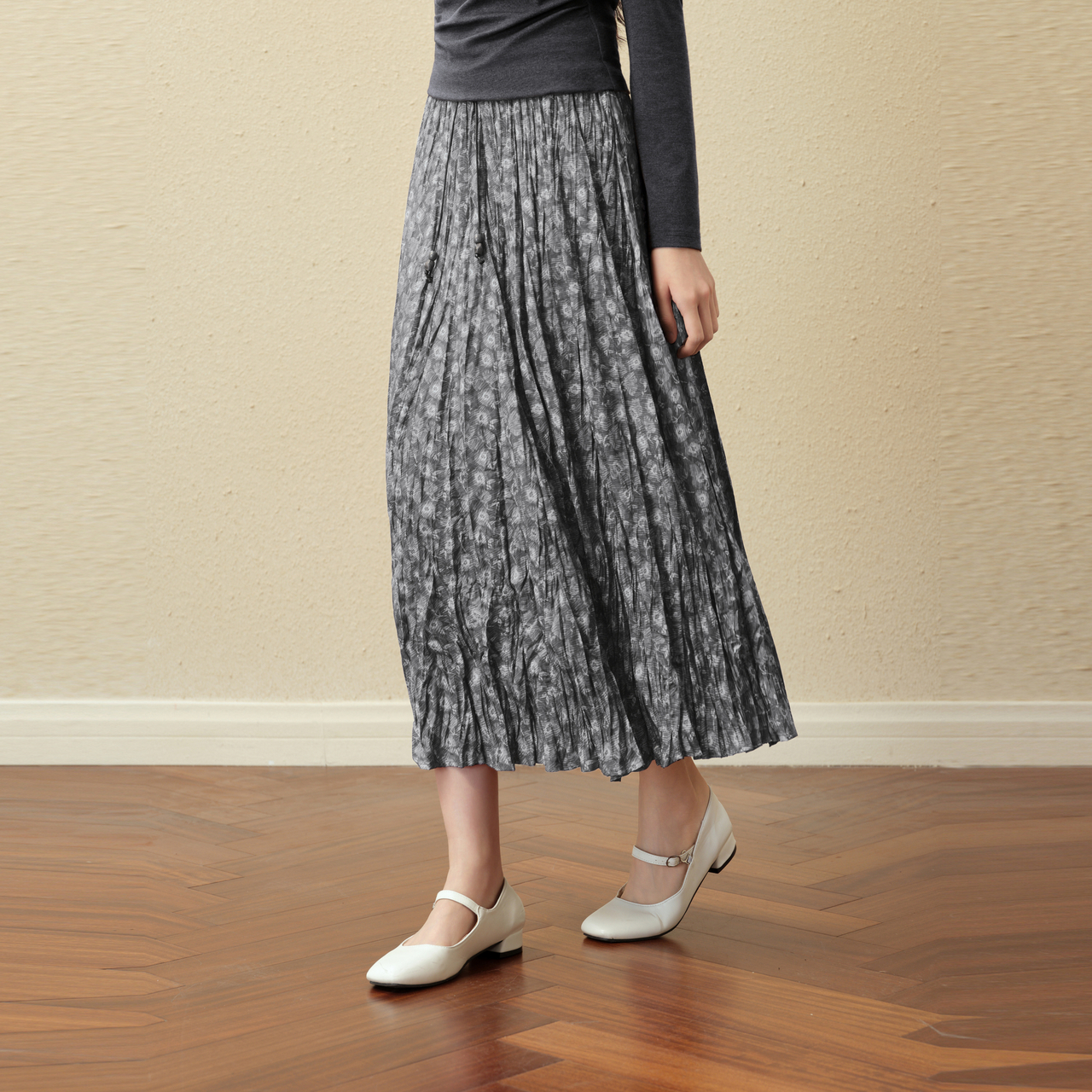 RUISHI芮时 可机洗60支羊毛知识分子风A字遮肉显瘦百褶半身裙女冬