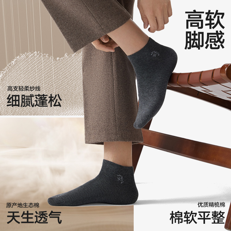运动全棉男袜春秋 厚款 浪莎袜子男士 短袜纯棉防臭吸汗中筒棉袜冬季
