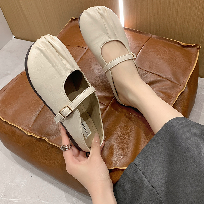 平底半拖单鞋 懒人包头半拖鞋 褶皱豆豆穆勒鞋 秋法式 女外穿2025新款