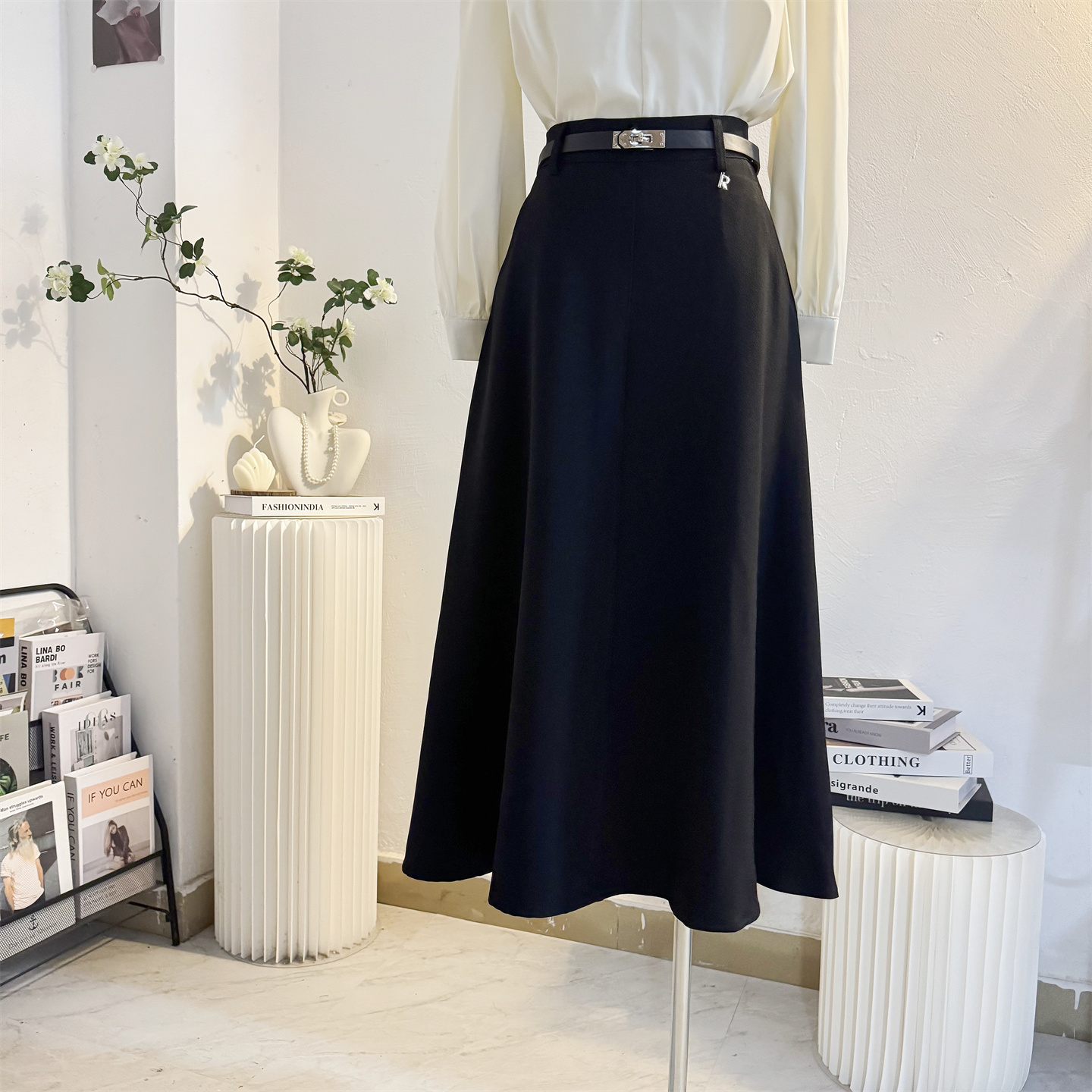 通勤气质A字大摆长裙子 中长款 灰色西装 半身裙高腰伞裙女2025秋季