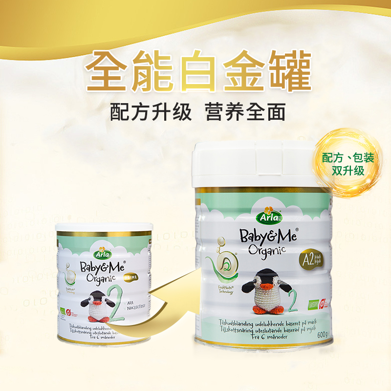 丹麦进口Arla宝贝与我奶粉2段白金a2版 阿拉二段婴儿有机奶粉600克