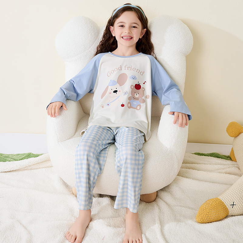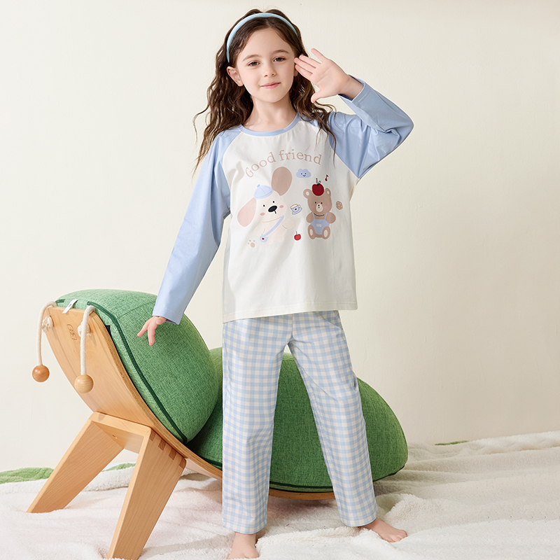 女童睡衣家居服套装 全棉长袖 纯棉a类春秋季 儿童睡衣女孩2025新款