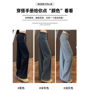 高腰垂坠感显瘦春夏休闲阔腿卫裤 新款 子女2025秋季 灰色直筒运动裤