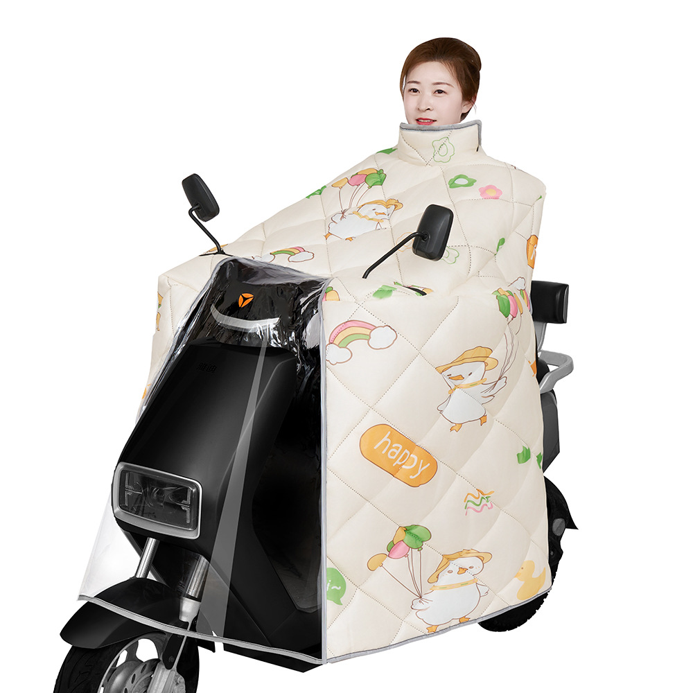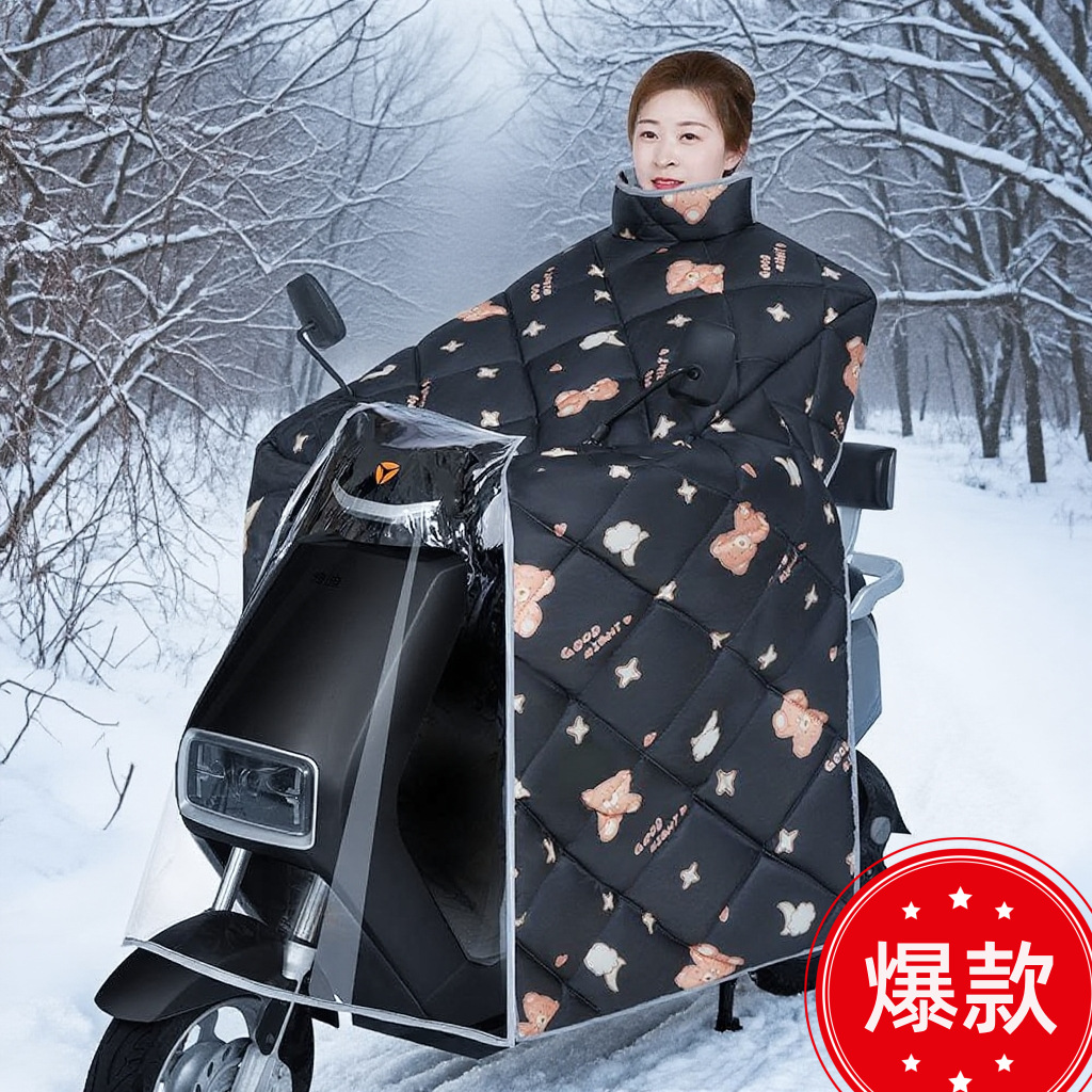 通用 电瓶摩托防风防水罩四季 电动车挡风被冬季 加绒加厚全包斗篷式