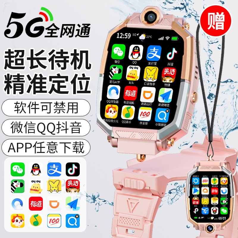 4g全网通可插卡初中小学生男童女孩手环手机 纽曼儿童电话手表学生防水多功能智能gps定位电信版 官方正品