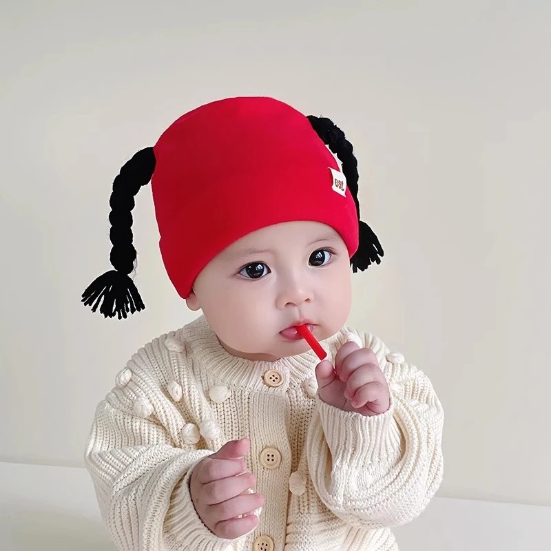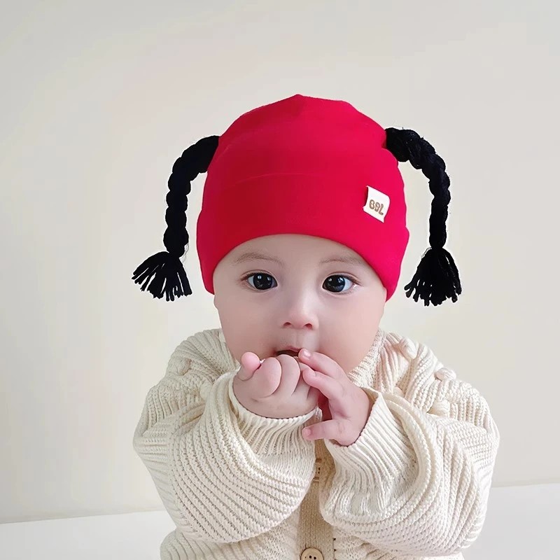 婴幼儿帽子秋冬款 男女宝宝可爱辫子新生儿护囱门胎帽囟门套头帽潮