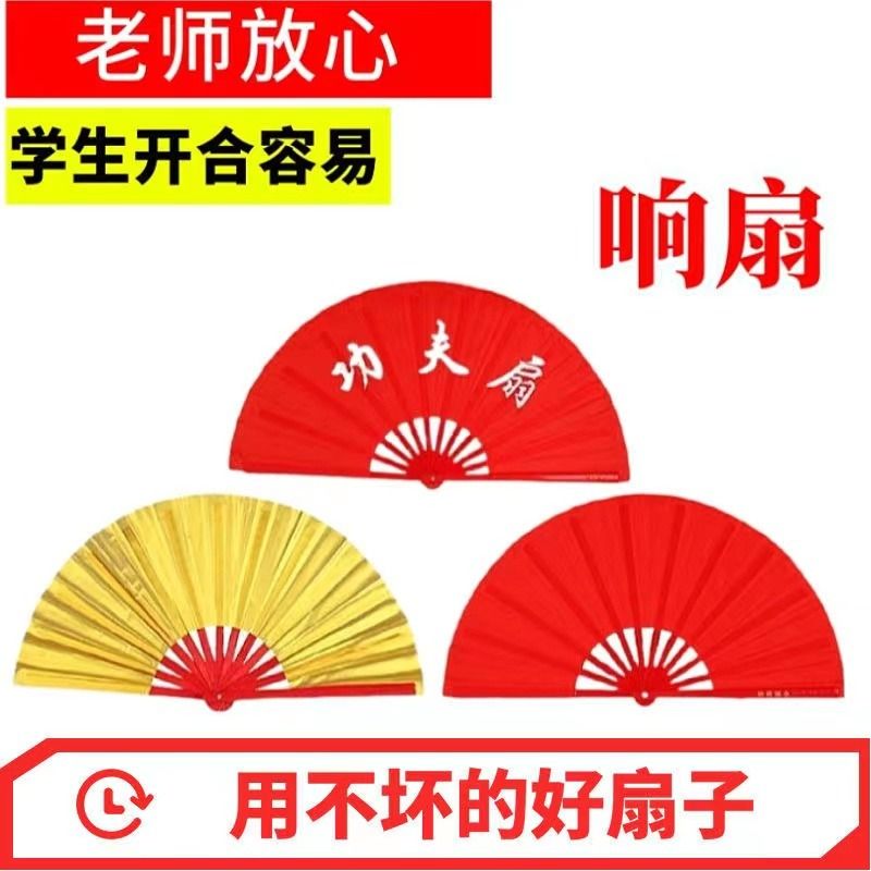 太极功夫扇响扇少年强中国强武术扇子红色双面儿童朗诵舞蹈表演扇