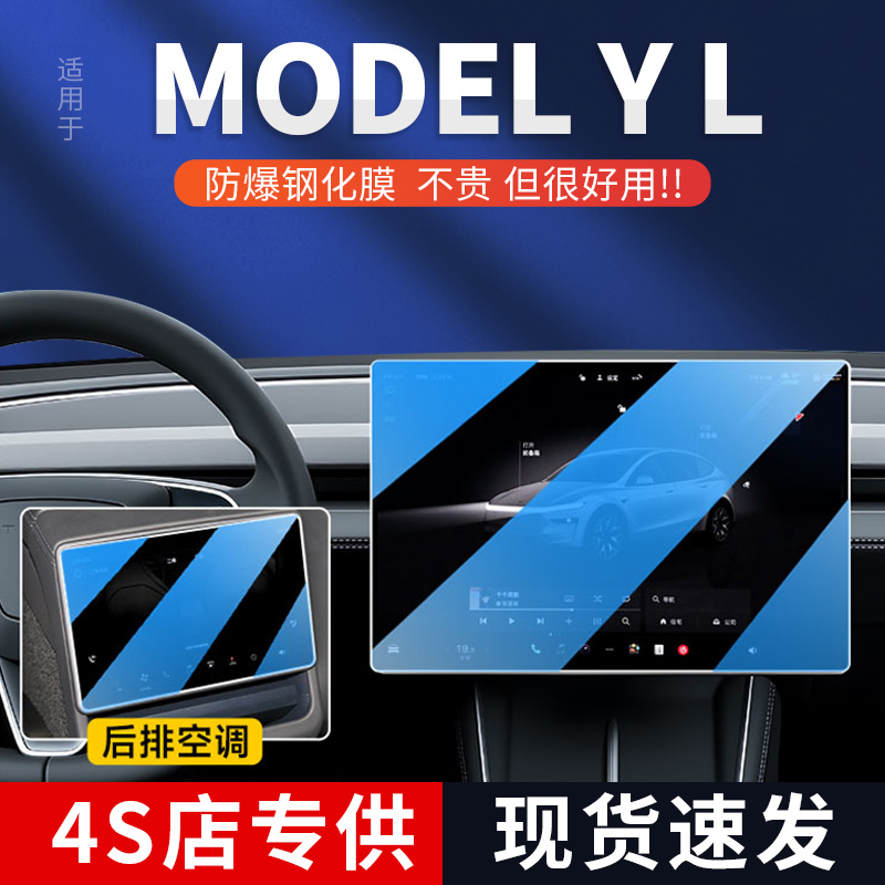 适用于特斯拉MODELYL中控屏幕钢化膜YL装 饰用品配件导航贴膜车内.