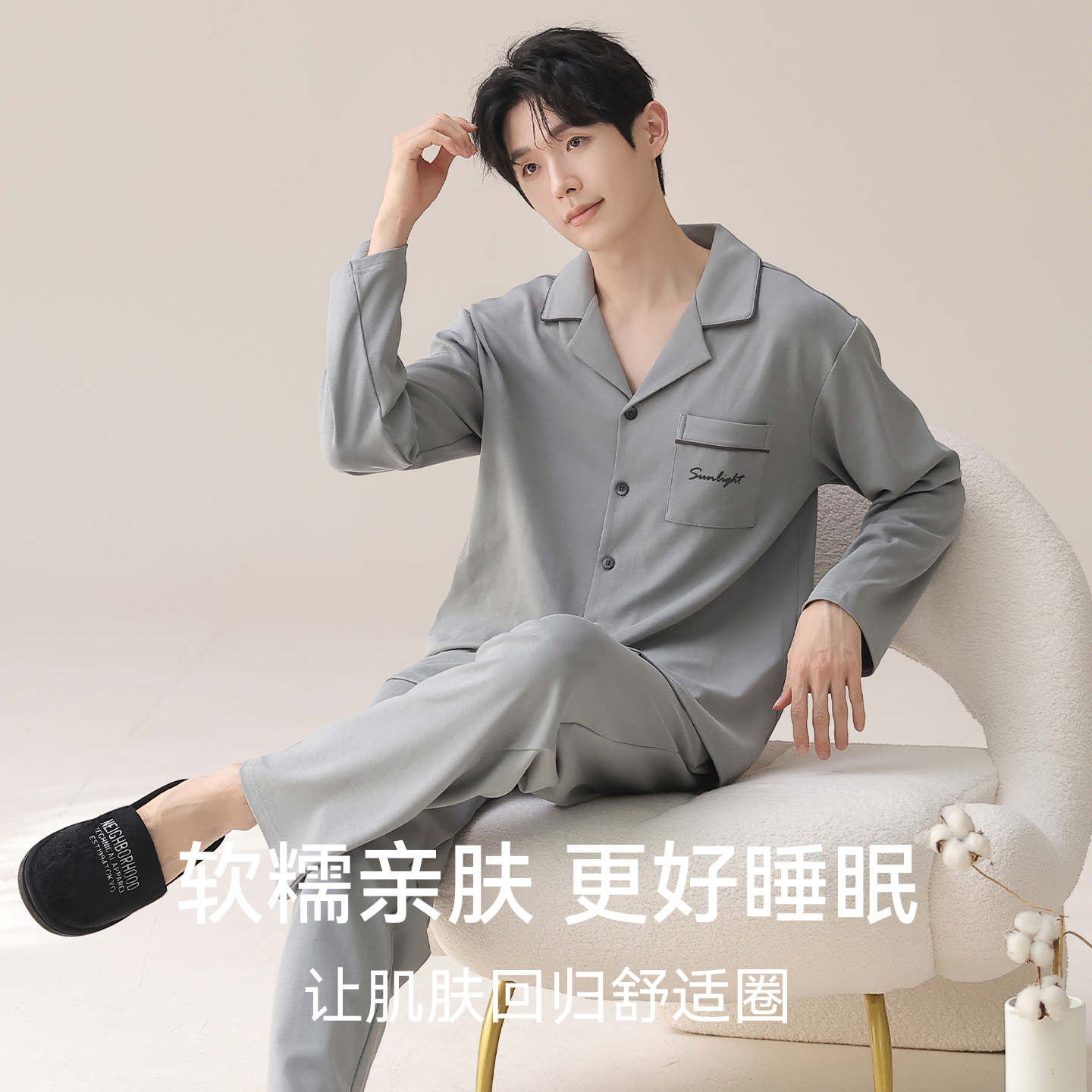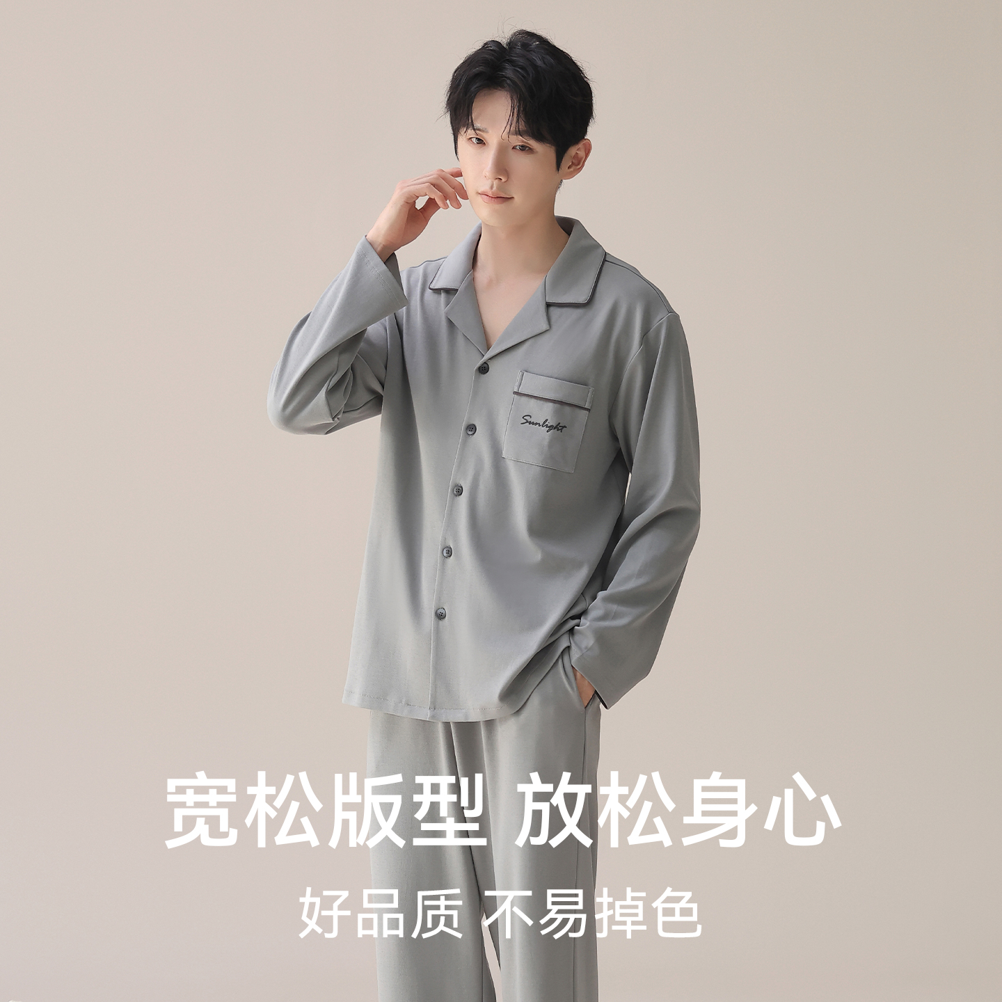 纯棉睡衣男士 家居服套装 长袖 休闲大码 可外穿 秋季 都市丽人2025新款