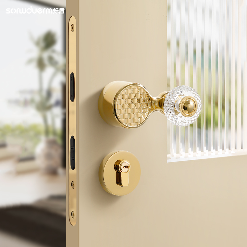 烁盾法式 金色水晶门锁室内磁吸静音门把手卧室家用房间木门分体锁