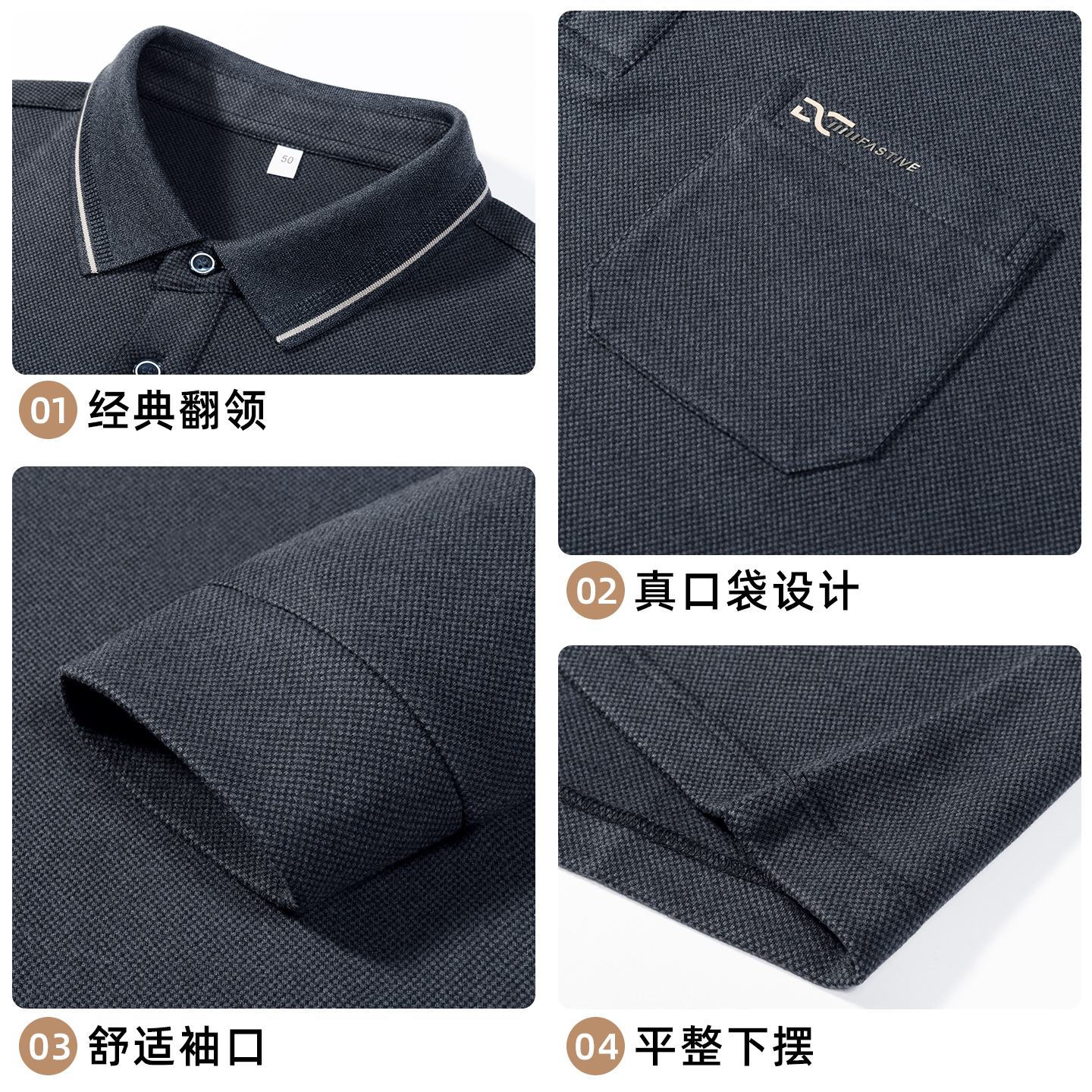 德绒打底衫 新款 t恤真口袋中年男士 红色长袖 中老年衣服 爸爸婚宴装