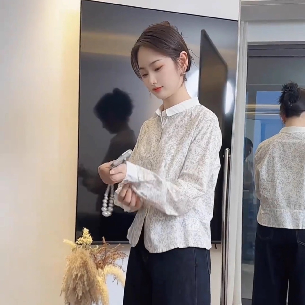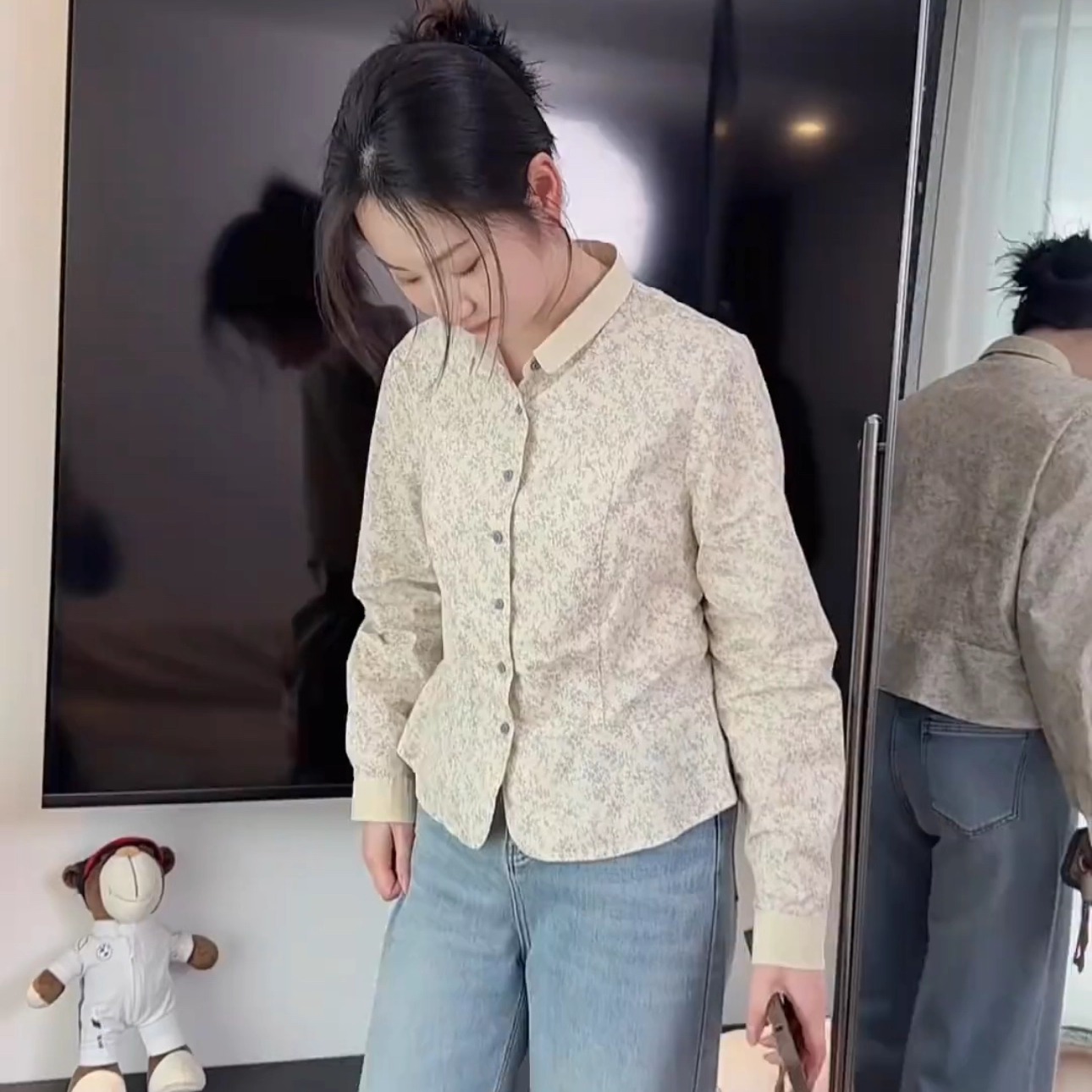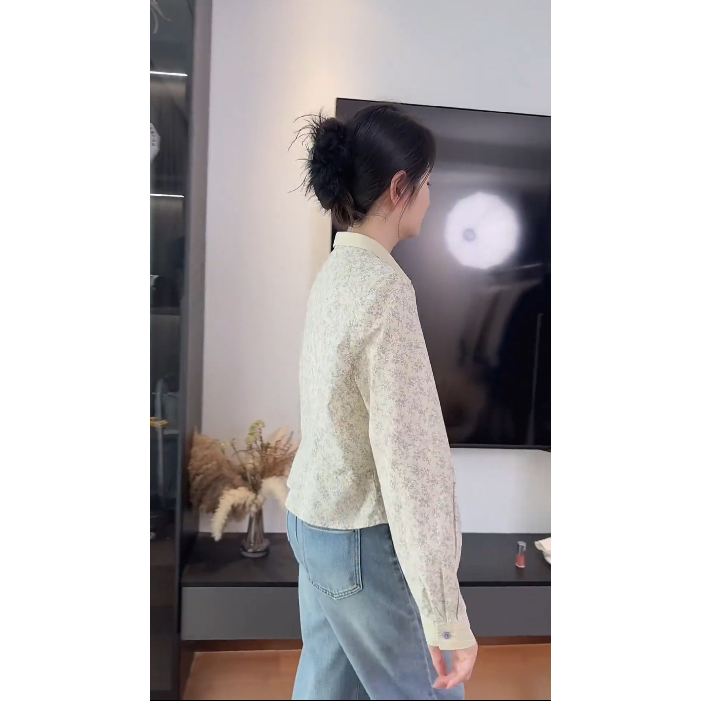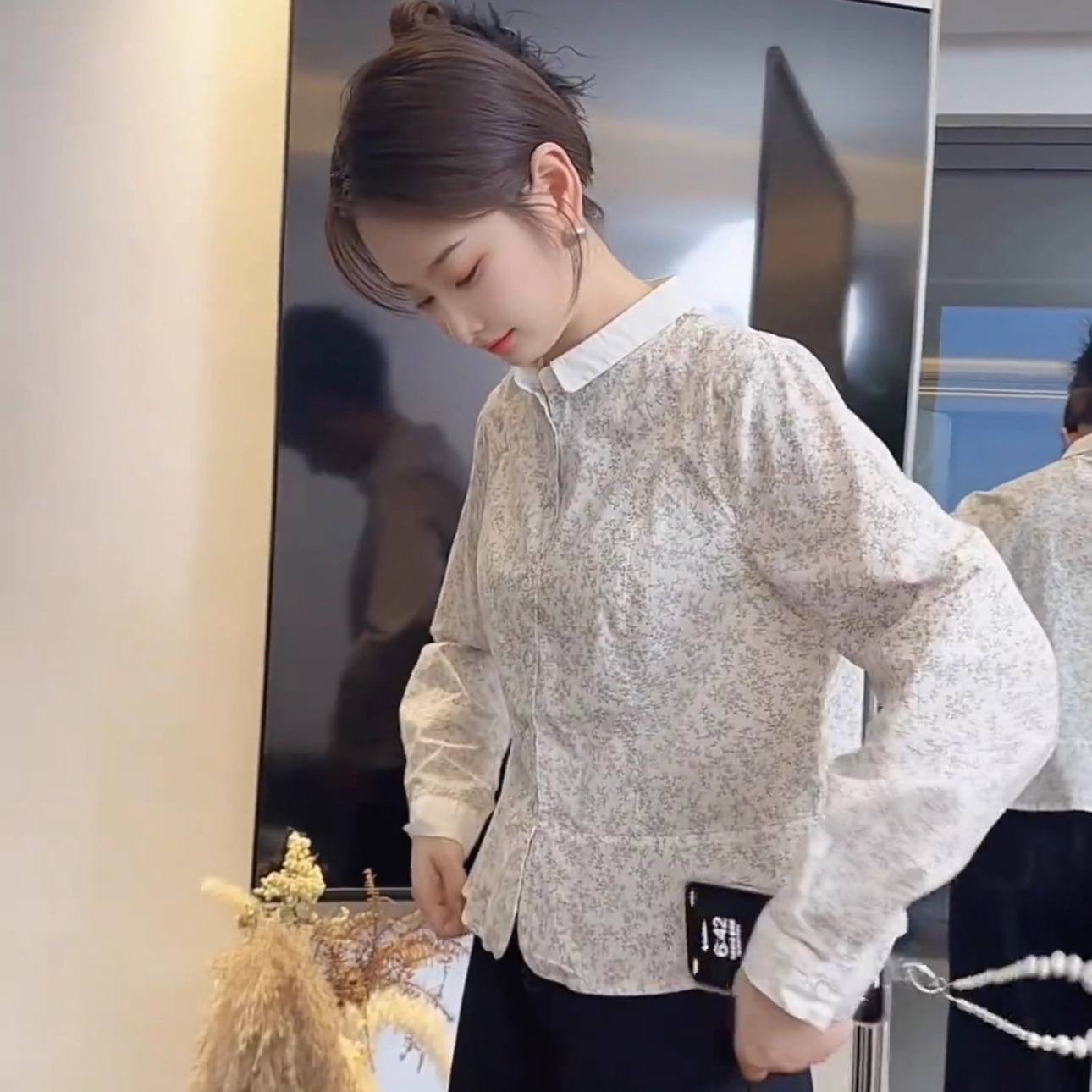 印花上衣短款 韩系碎花衬衫 新款 2025春装 小个子设计感衬衣潮 女长袖