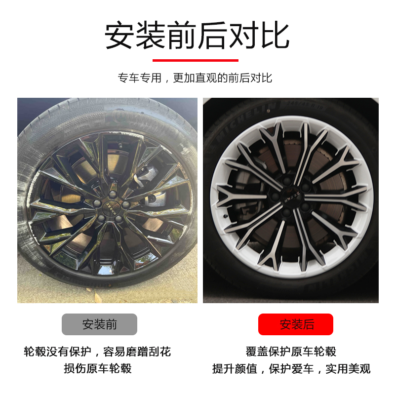 黑武士轮毂盖加装 饰改装 保护罩轮胎帽 GT轮毂保护圈装 适用极氪007