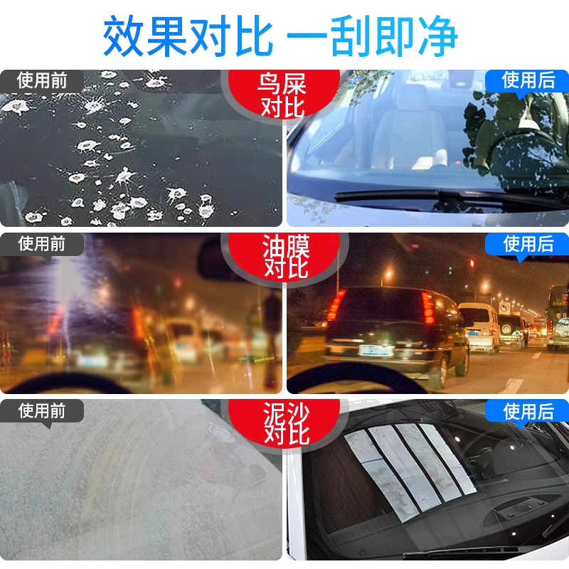 浓缩型镀晶玻璃水汽车雨刮水车用雨刮精防雨除虫胶除油膜驱水清洁