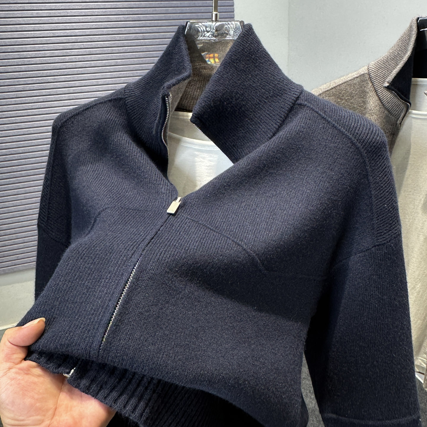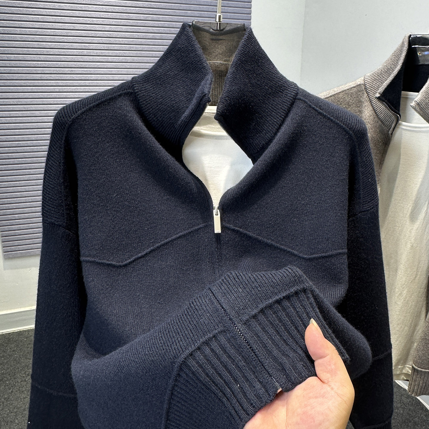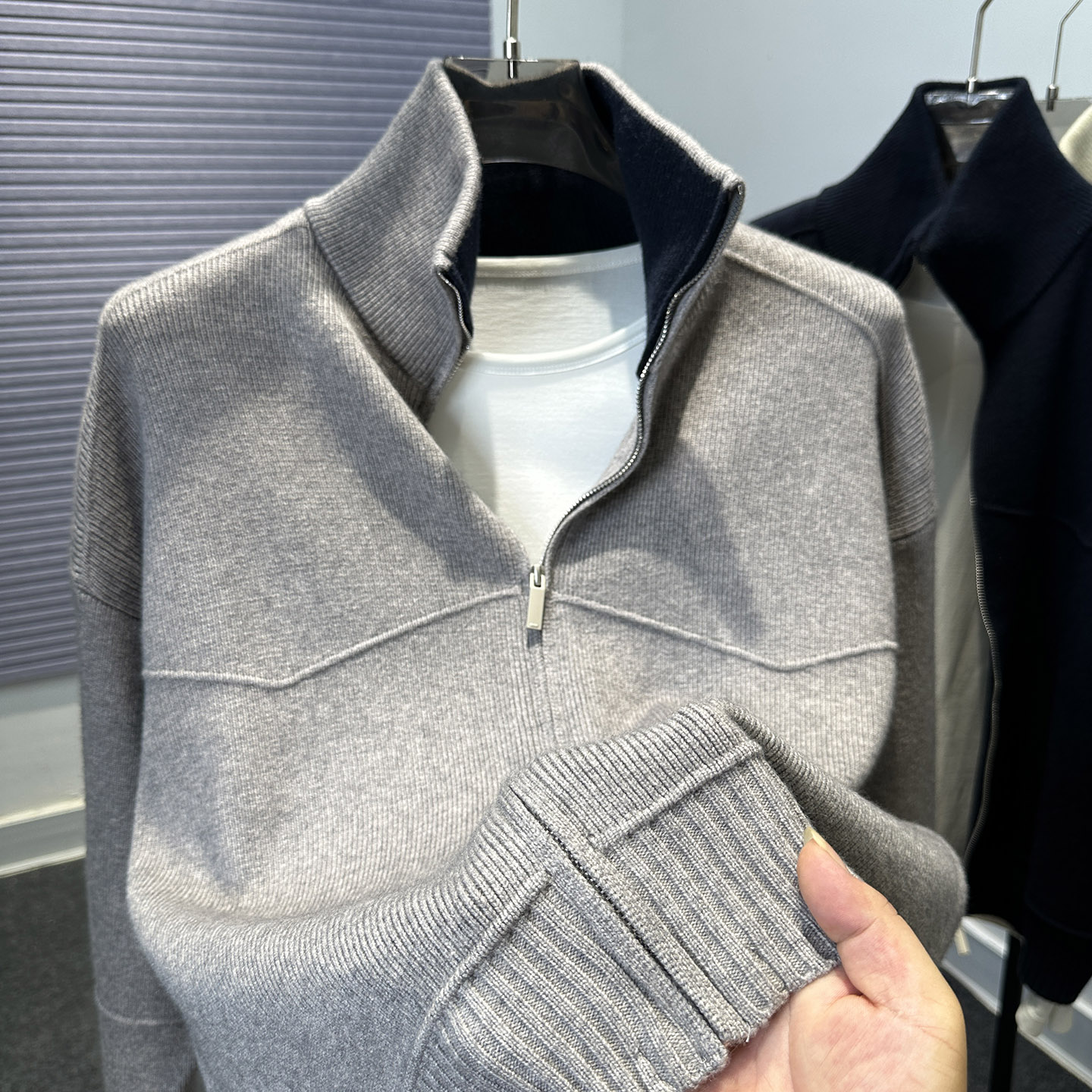 巴恩风男女宽松撞色半高翻领针织开衫 纯色拉链毛衣外套潮 秋冬新款
