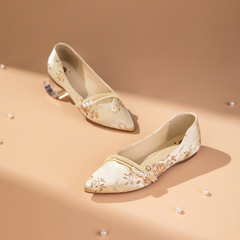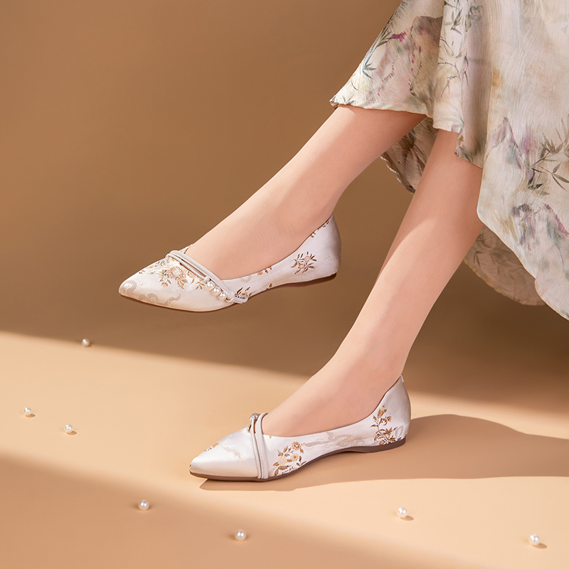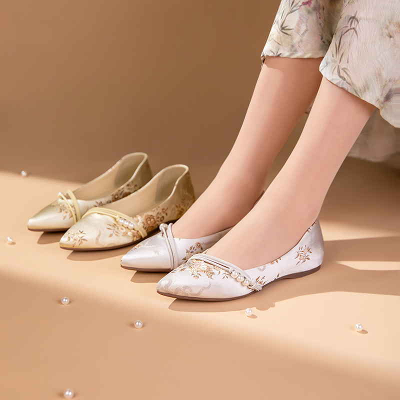 软底一脚蹬气质旗袍鞋 国风单鞋 女鞋 复古刺绣新中式 女平底尖头新款