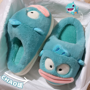 毛毛女士室内居家毛绒情侣厚底防滑可爱保暖棉鞋 小丑鱼冬季 棉拖鞋