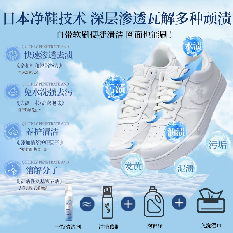 运动皮鞋 擦鞋 洗鞋 清洗剂清洁免洗擦鞋 专用去污增白神器 湿巾小白鞋
