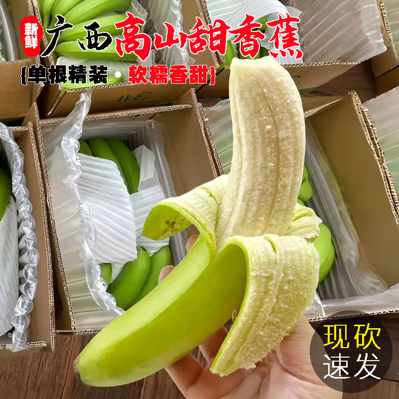 广西正宗高山甜香蕉绿皮香蕉青皮自然熟热带新鲜水果香甜现砍现发