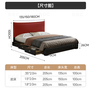 DDC超薄床头真皮床小户型简约极窄储物1.5米不占地方 床双人床