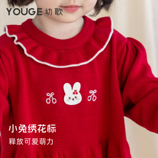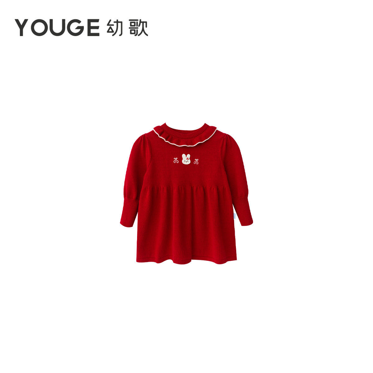 纯棉舒适柔软毛衣裙女宝宝花边领连衣裙 新款 YOUGE幼歌 婴幼儿秋季
