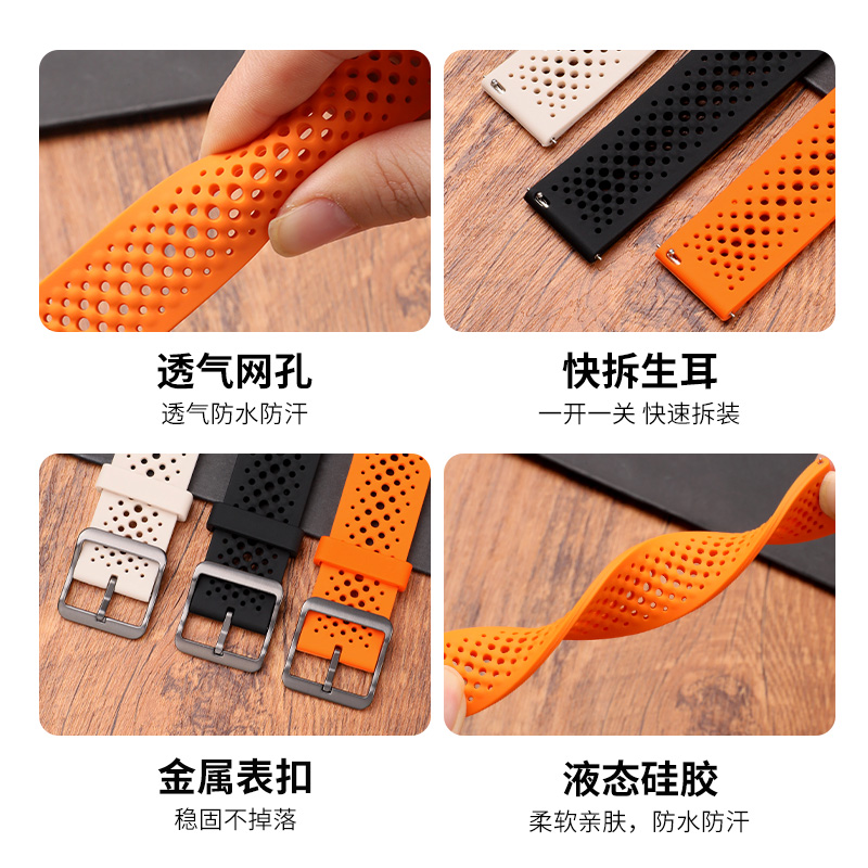 百搭替换带男女智能夏天 表链gspro运动时尚 适用于荣耀手表GS4表带4pro透气硅胶网洞GS3i新款 腕带Magic2时尚