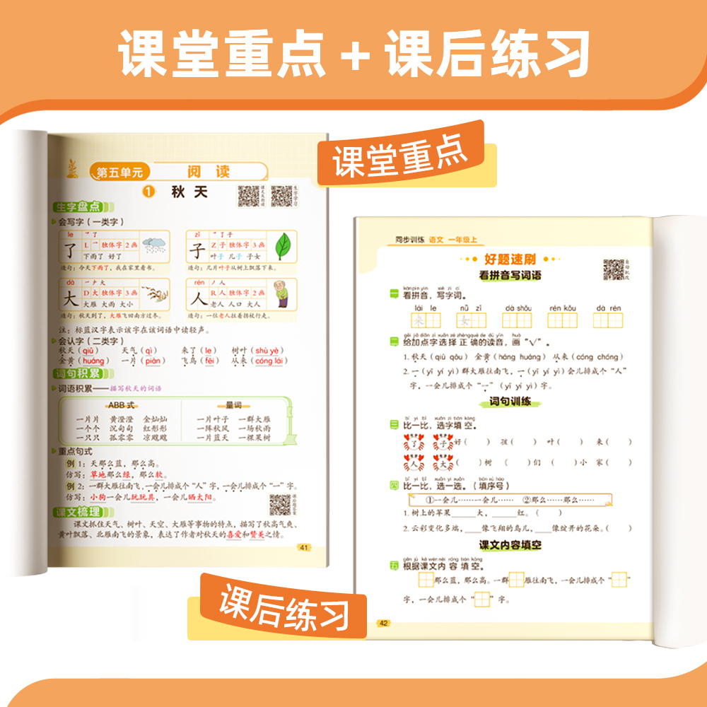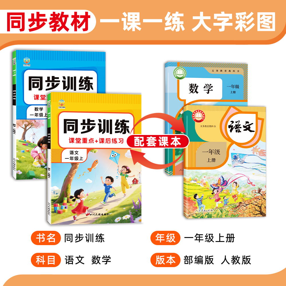 2025新 教材同步练习册一课一练小学1年级上语数专项练习与测试课后训练题同步课时作业本 一年级语文数学同步专项训练上册人教版