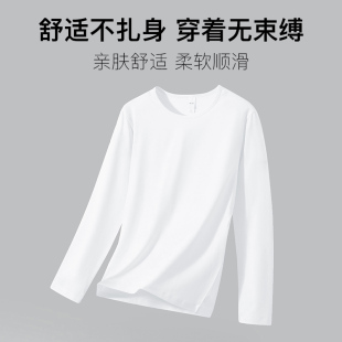 抗菌防螨纯色白色秋衣 圆领上衣服内搭打底衫 莫代尔长袖 t恤男薄款